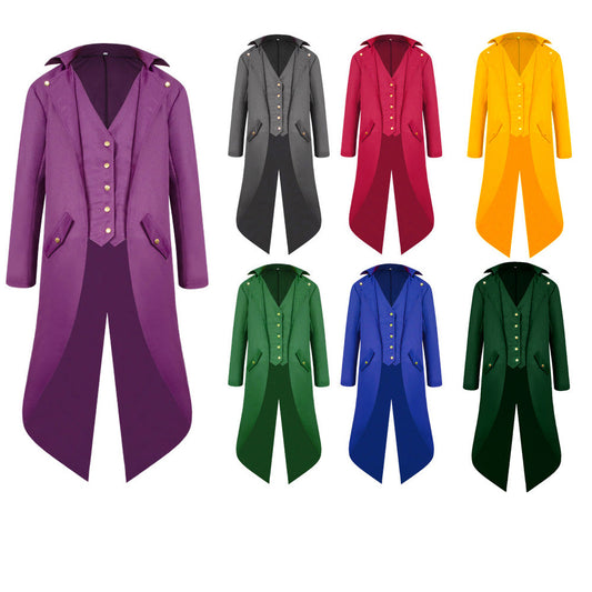 Medieval Renaissance Punk Coat Metal Vintage Buttons Magician Performance Costume