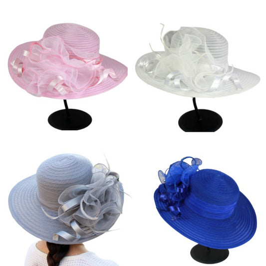 Elegant Women’s Spring Summer Organza Wide Brim Hat – Floral Mesh Sun Hat for Outdoor Events, Melbourne Cup, Fashion Outfits, Weddings, and UV Protection
