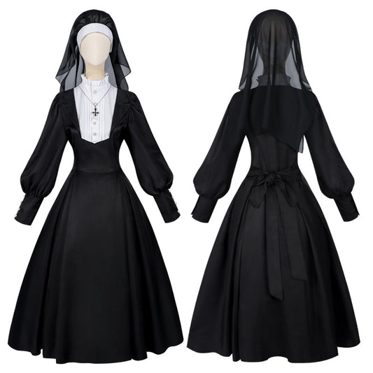 Halloween Cosplay Adult Women Priest Costume Lady Sister Cosplay Dress Full Set