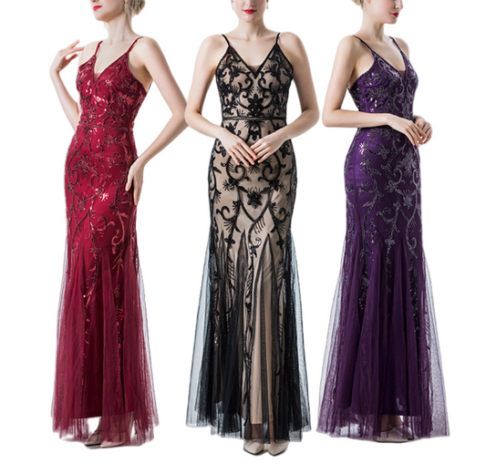 1920s Sequin Gatsby Flapper Long Dress – Vintage Mermaid Evening Gown for Women