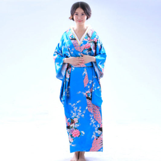 Japanese Women Traditional Kimono Imitation silk Yukata cherry blossom festival