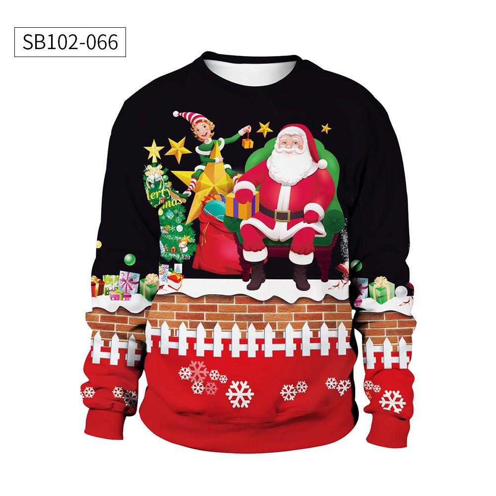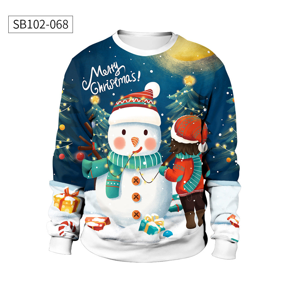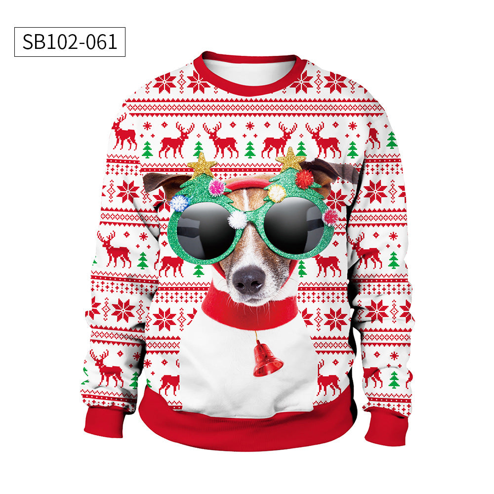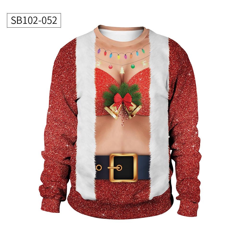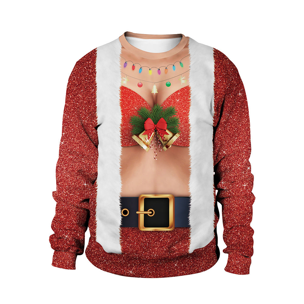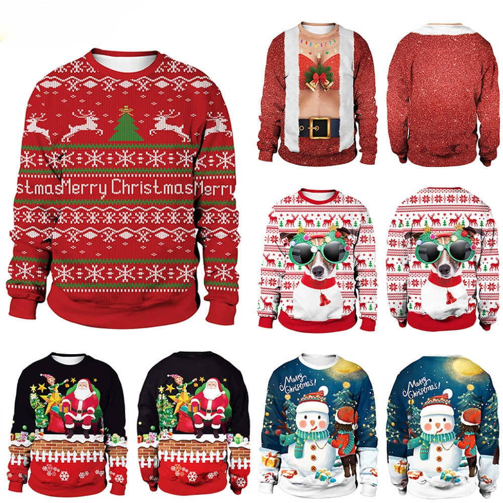 Adults Christmas Apparel Round Neck Christmas Deer Couple Digital Print Sweater