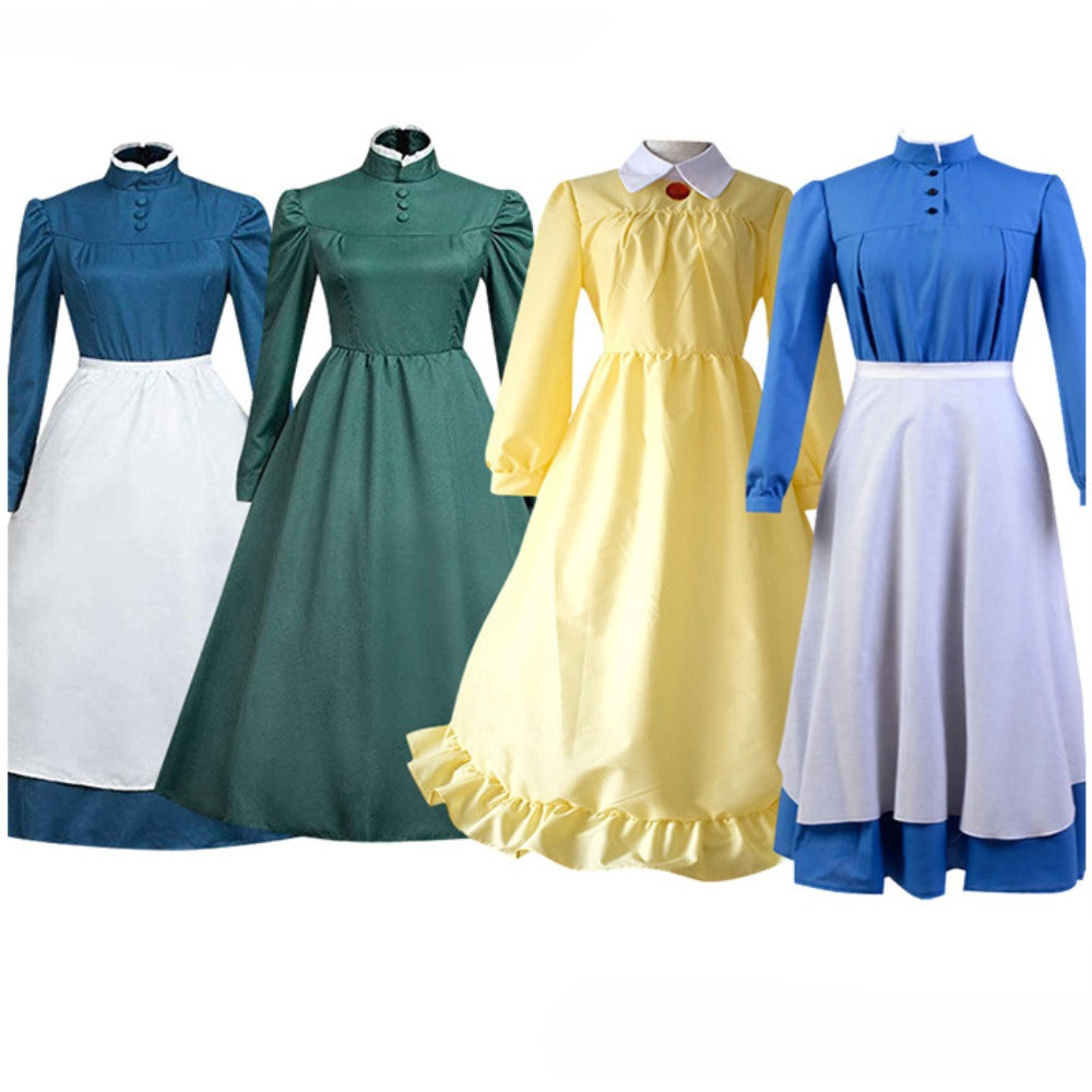 Anime Sophie Cosplay Costume Maid Outfit Yellow Green Blue Dress