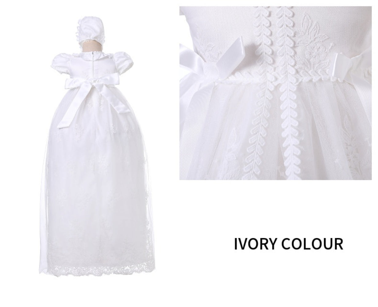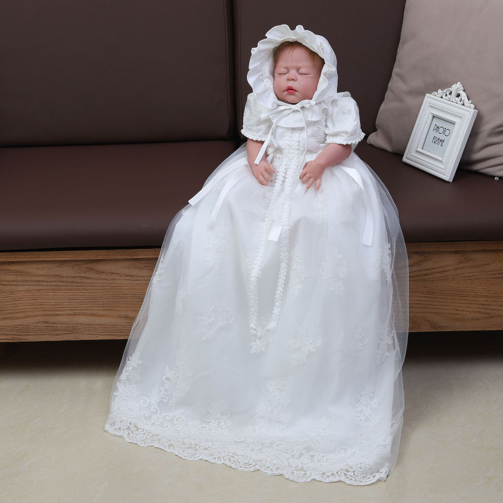 Baby Girl Long Lace Christening Gown with Bonnet – Infant Baptism Dress