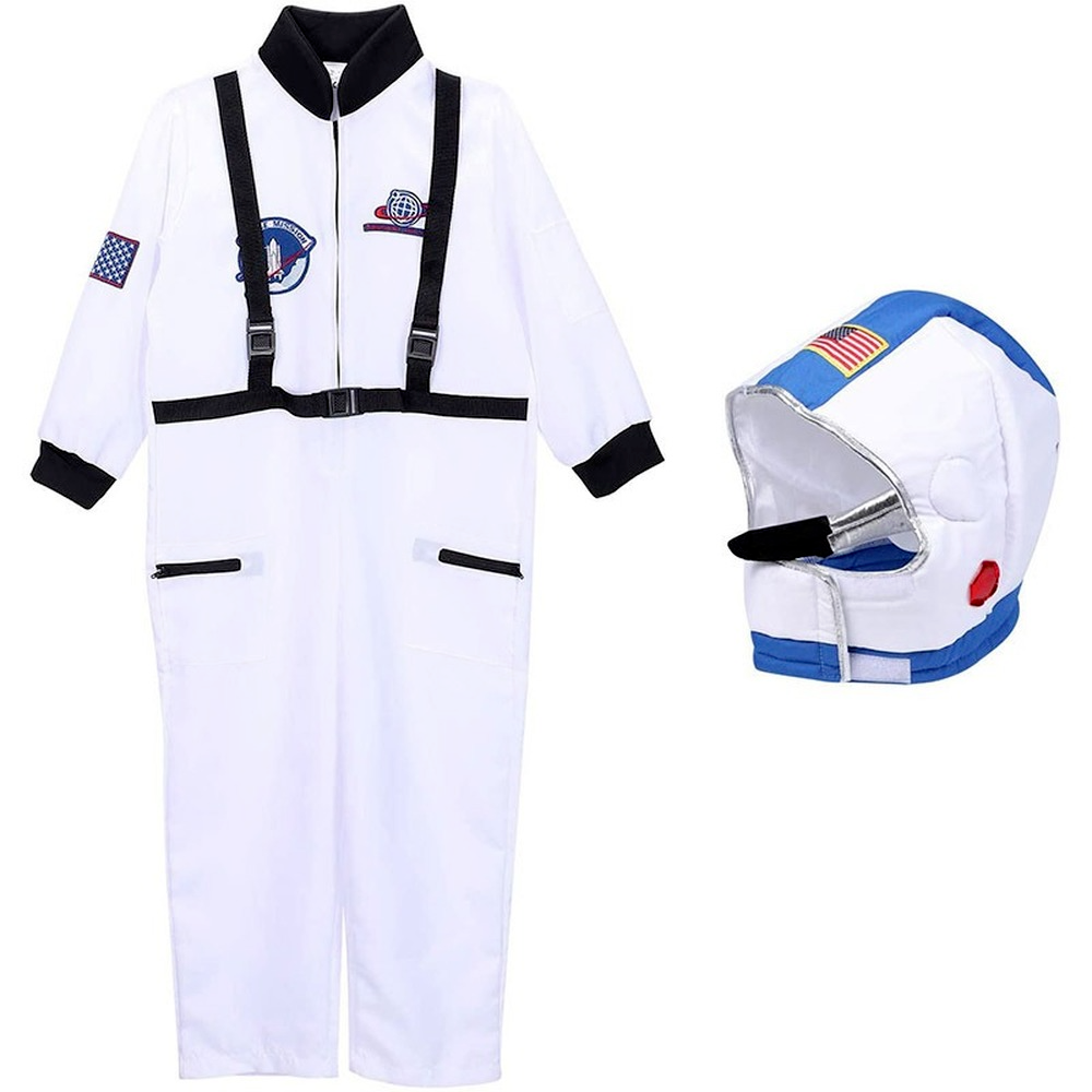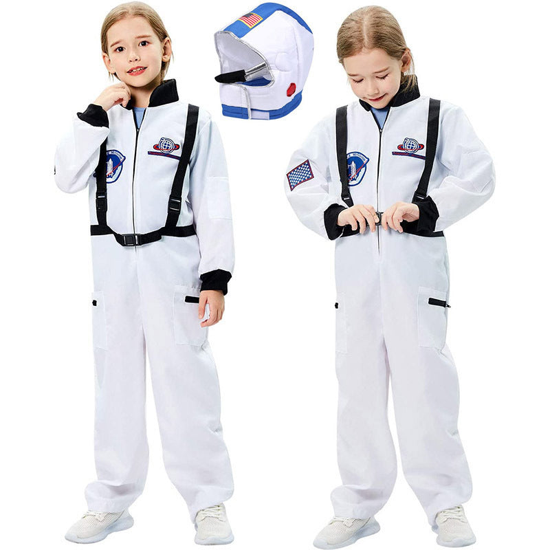 Boys Girls Astronaut Costume NASA Orange White Space Suit Halloween Fancy Dress