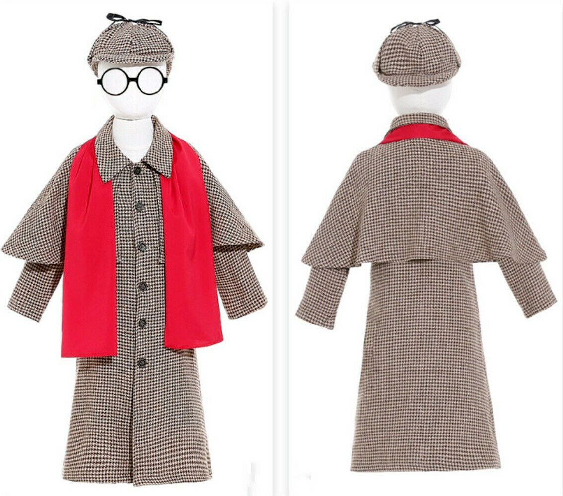Child Detective Costume Boys Girls Book Week Cosplay Coat + Hat + Glasses