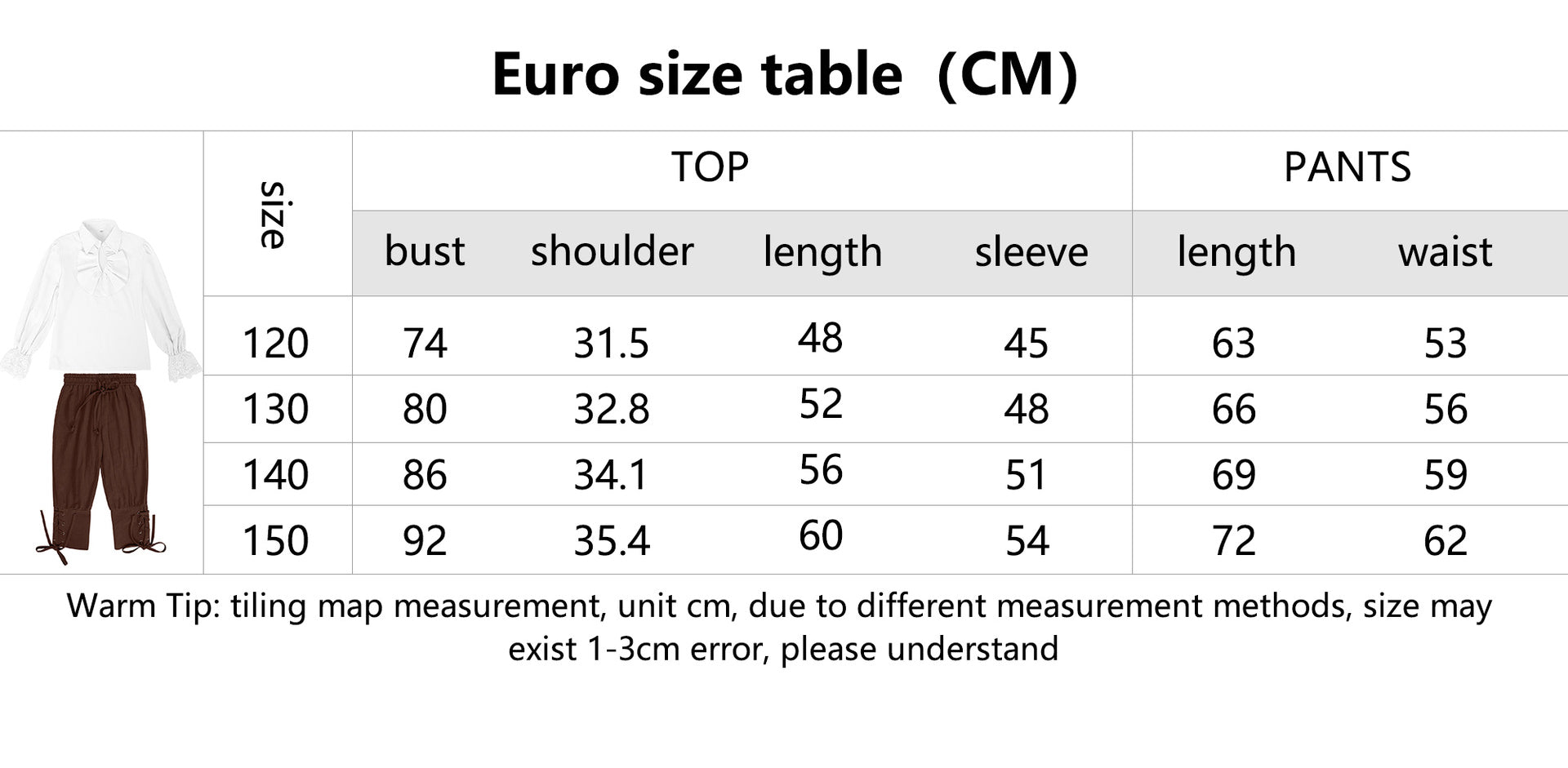 - Transform your child into a daring adventurer with this Medieval Pirate Suit Costume! Includes a Renaissance-style shirt and capris, perfect for Halloween, Scotland-themed events, or Jacobite reenactments. Order now for a swashbuckling experience!