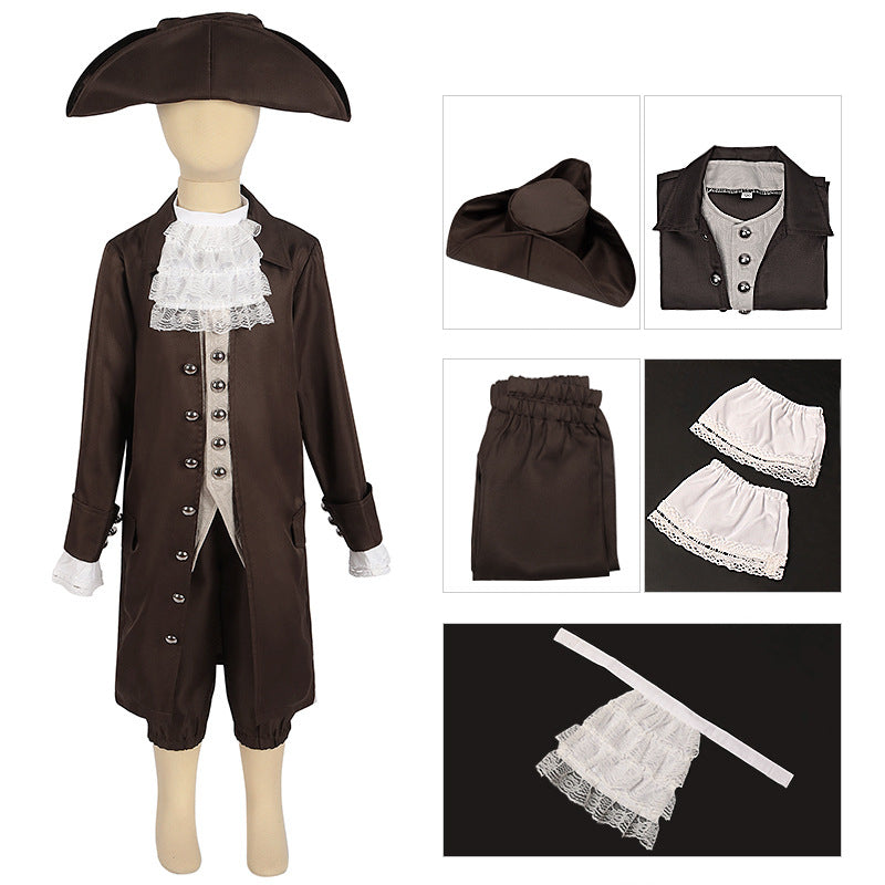 - Set sail on a historical adventure with our Children's Little Pirate Costume, perfect for Halloween, colonial-themed events, and cosplay. This outfit combines the daring look of a pirate with the distinguished style of a colonial governor, making it a versatile choice for any young adventurer. Ideal for school plays, historical reenactments, or costume parties, this suit allows your child to embody a character from the high seas or the halls of power. Crafted for comfort and durability, it’s the perfect choice for creating unforgettable memories.