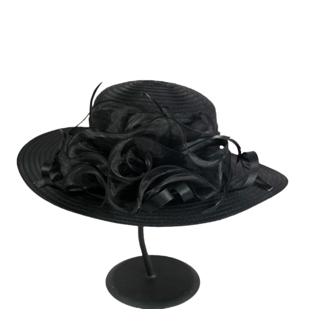 This elegant wide brim organza sun hat blends feminine charm and practicality for spring and summer styling: