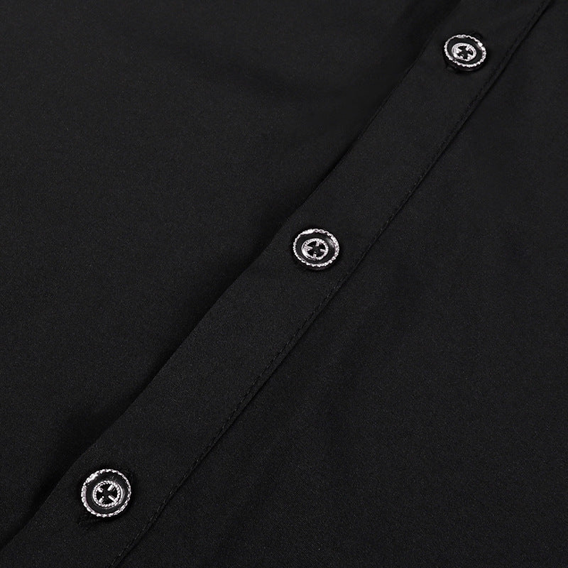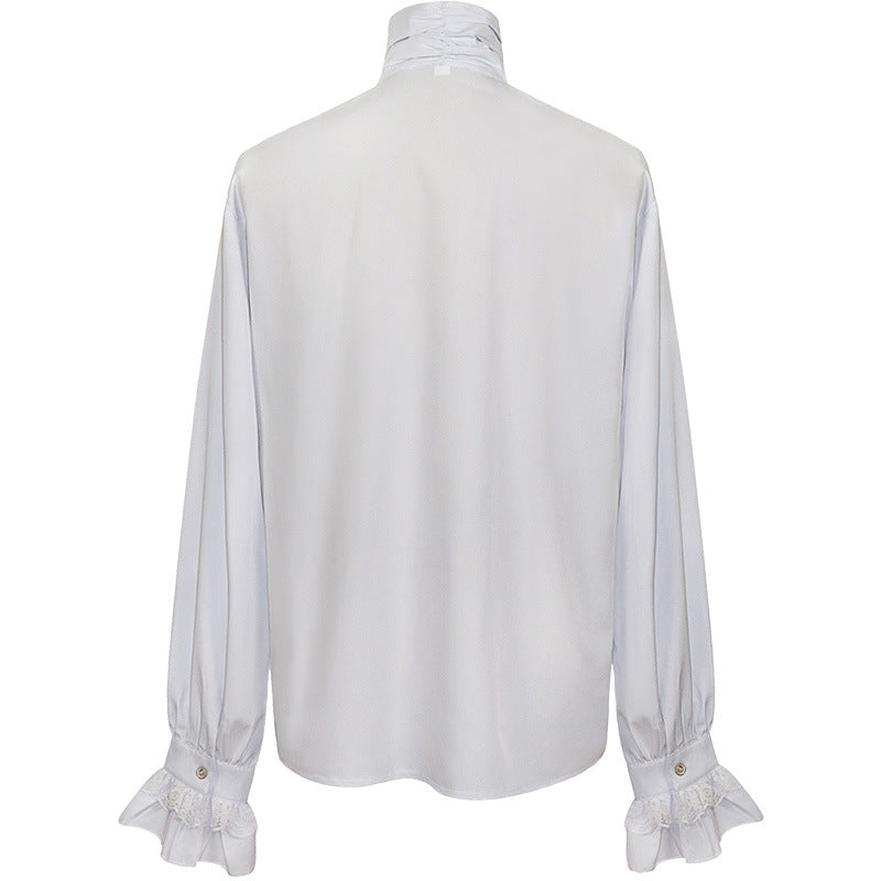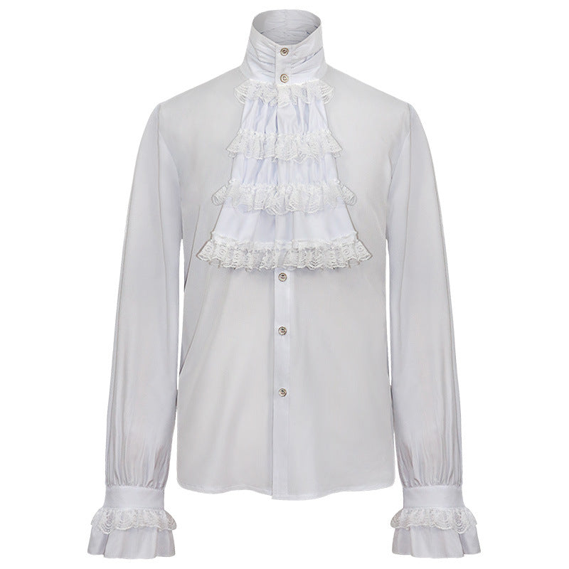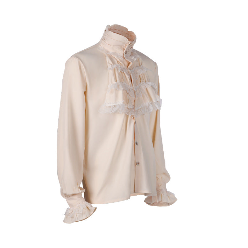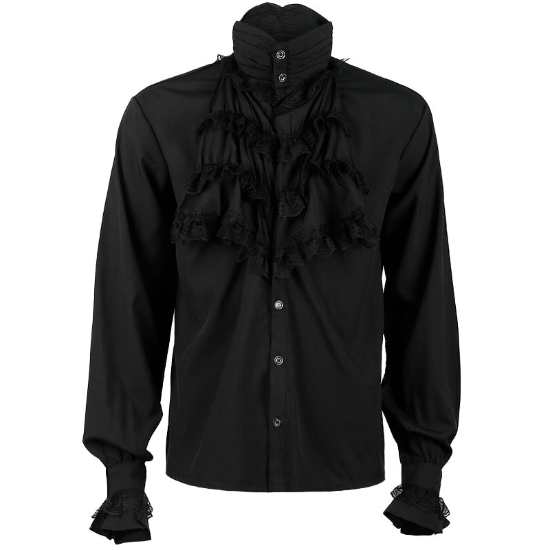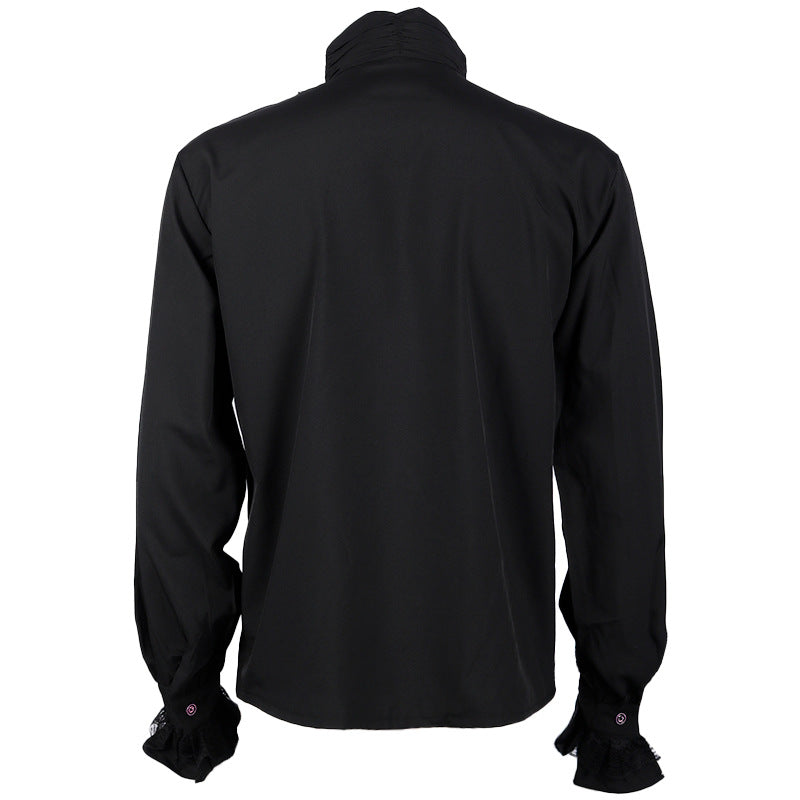 Gothic Ruffle Stand-up Collar Long Sleeve Men's Shirt with Tie - Elegant and Stylish Regency Era