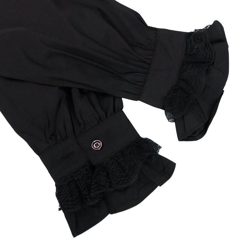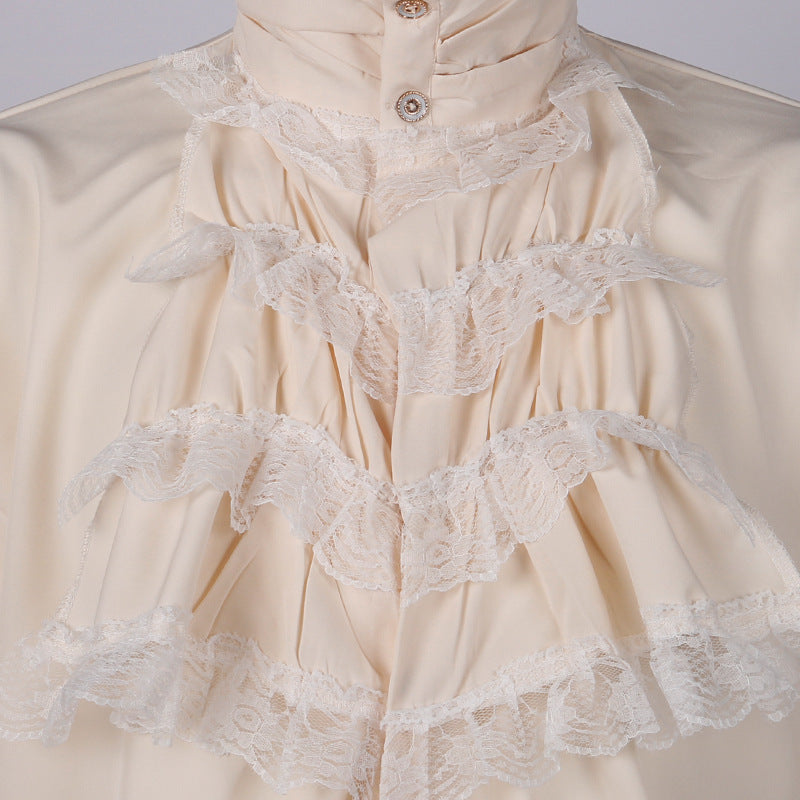 - This shirt features a soft crystal cotton fabric that is moisture-wicking, keeping you comfortable and dry. It has a stand-up collar design with ruffled edges, showcasing an elegant and charming demeanor.