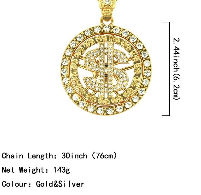 Fake Gold Chain Dollar Sign Necklace, Hip hop Long Chain Necklace Jewelry for Rapper Disco