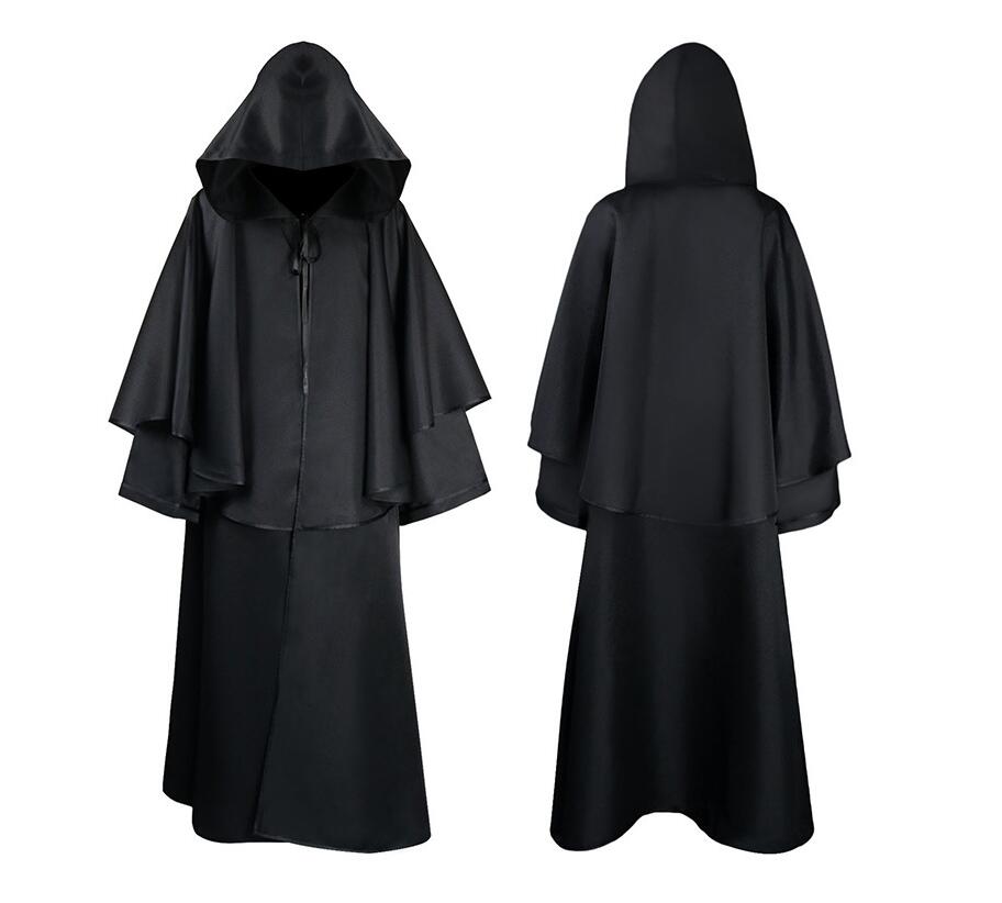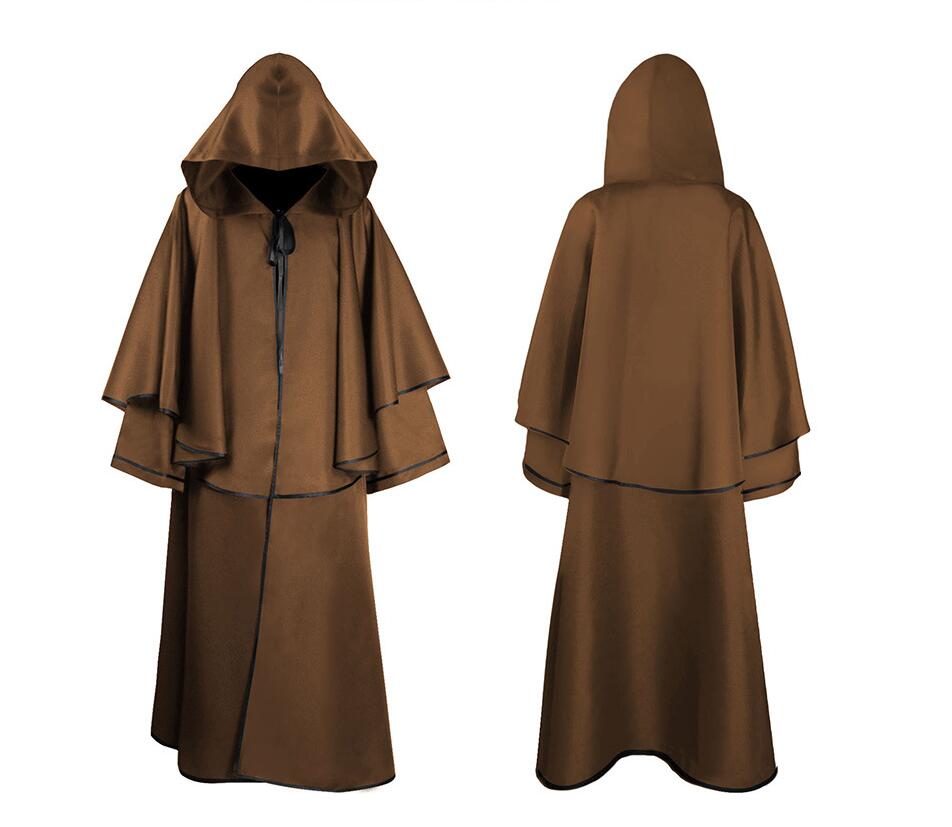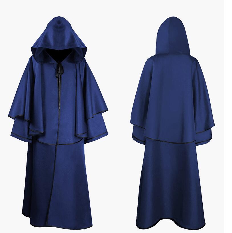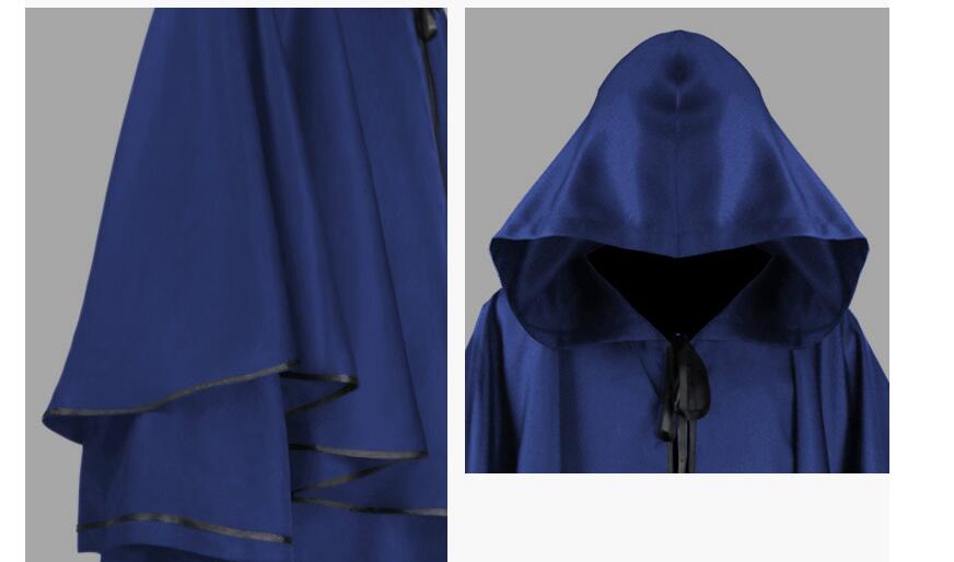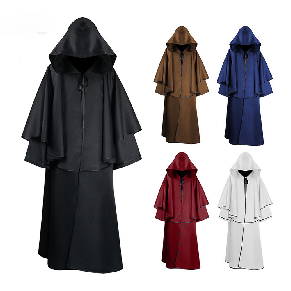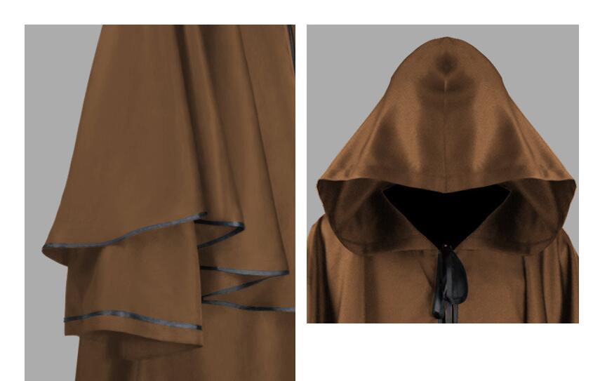 Hooded Cloak Halloween Robe Monk Robe Cape Long Sleeve Wizard Sorcerer Reaper Cloak