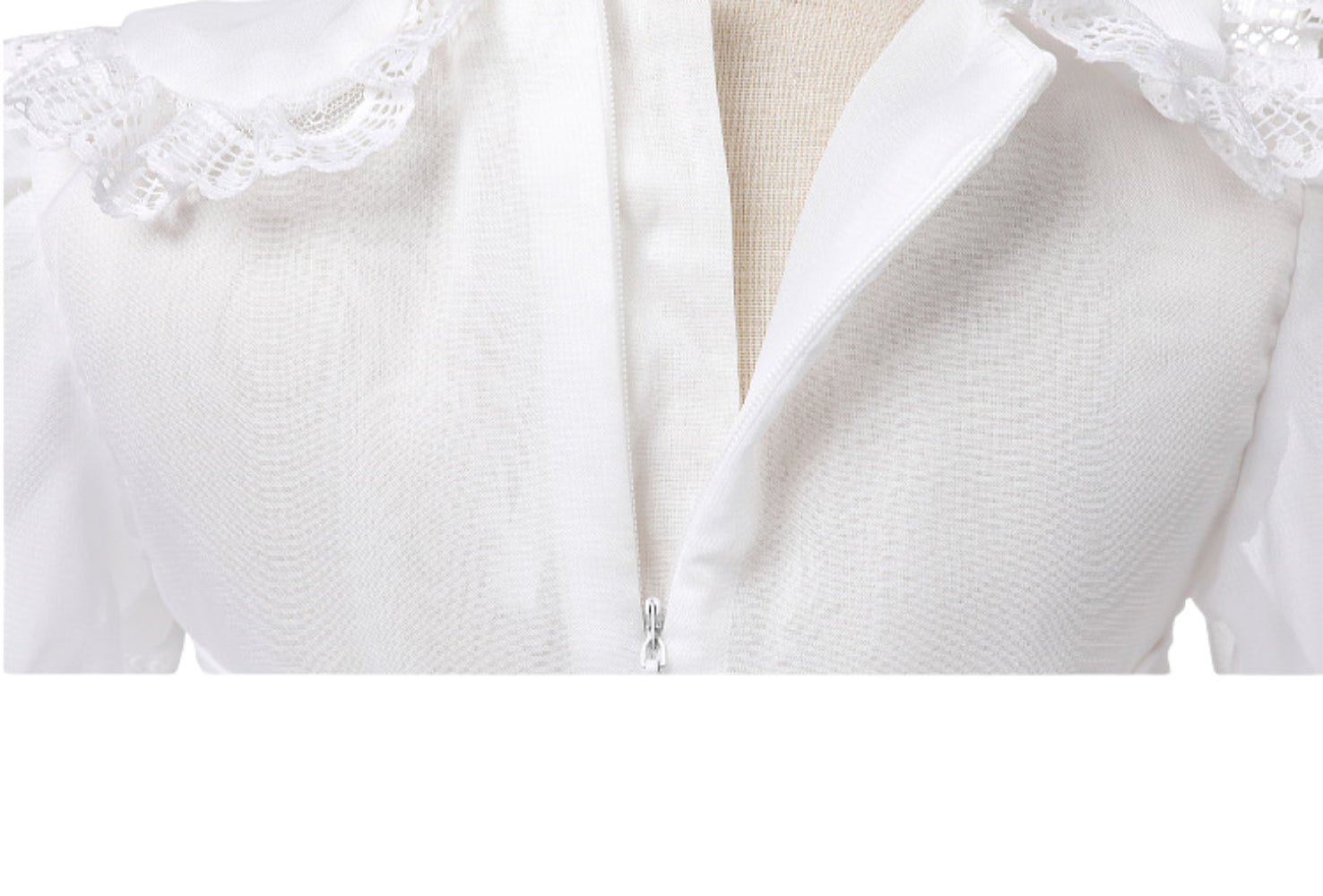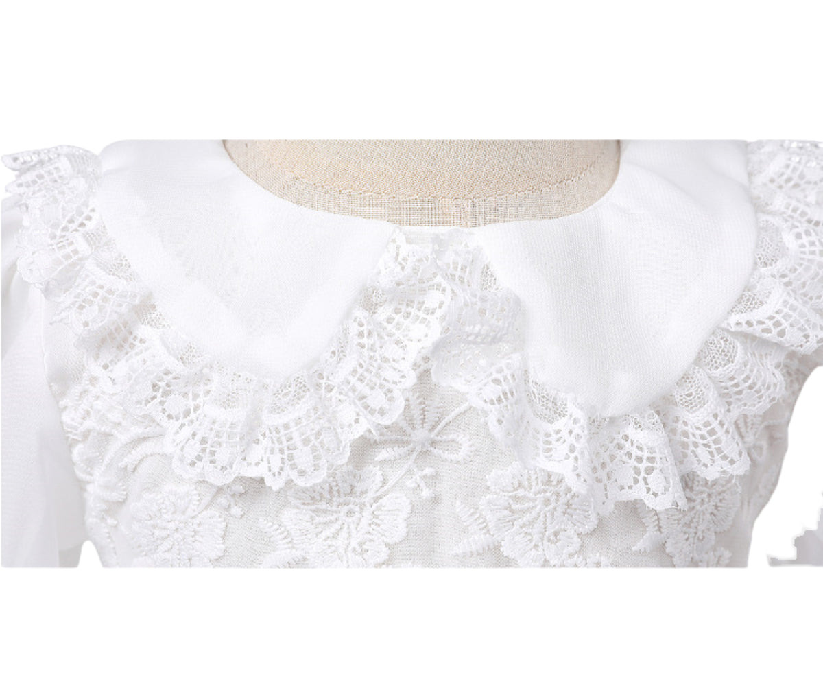 • Adorable Peter Pan collar with delicate lace trim for a vintage princess vibe