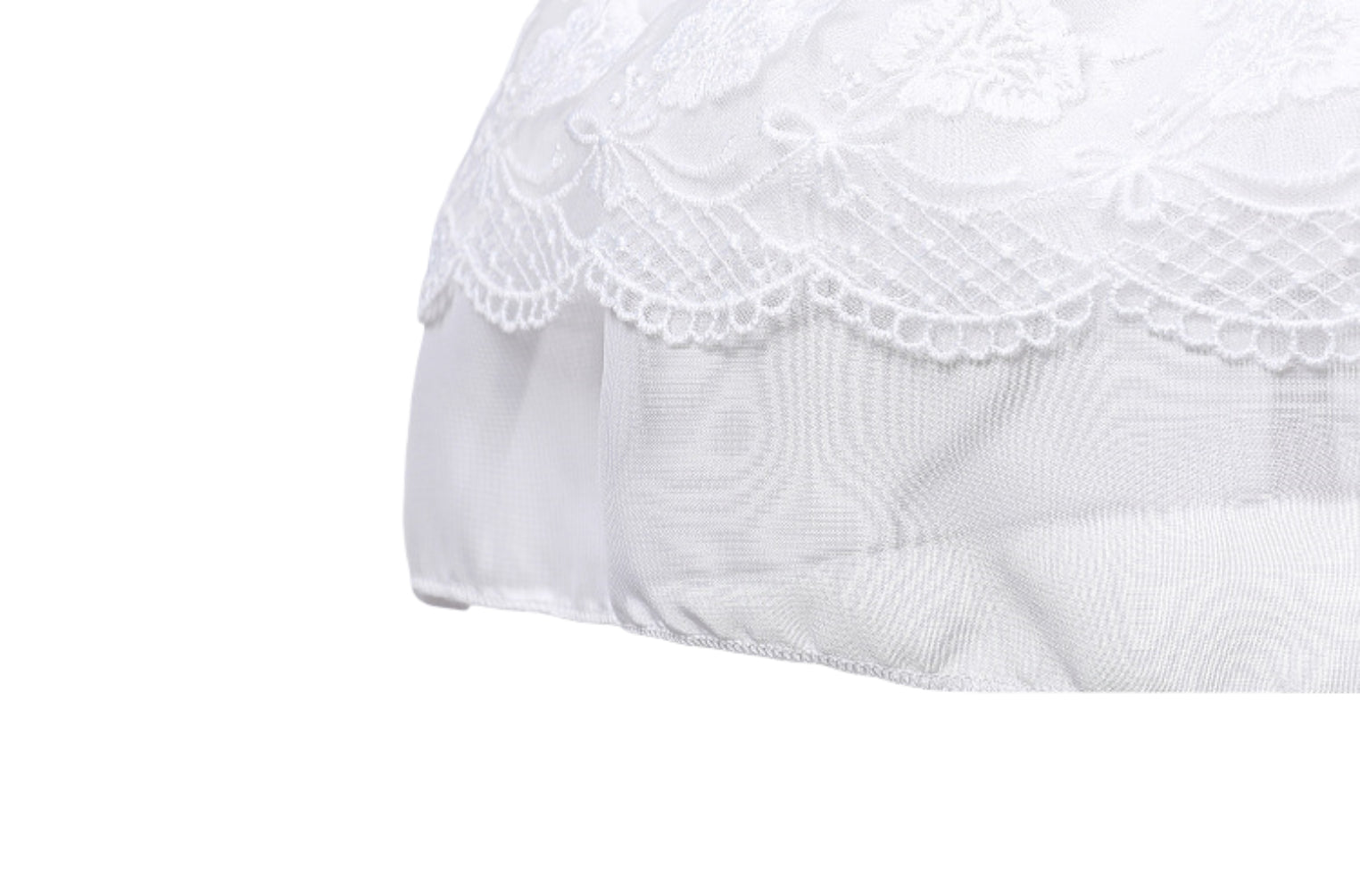 • Material: Lace, high-density chiffon, and soft cotton lining