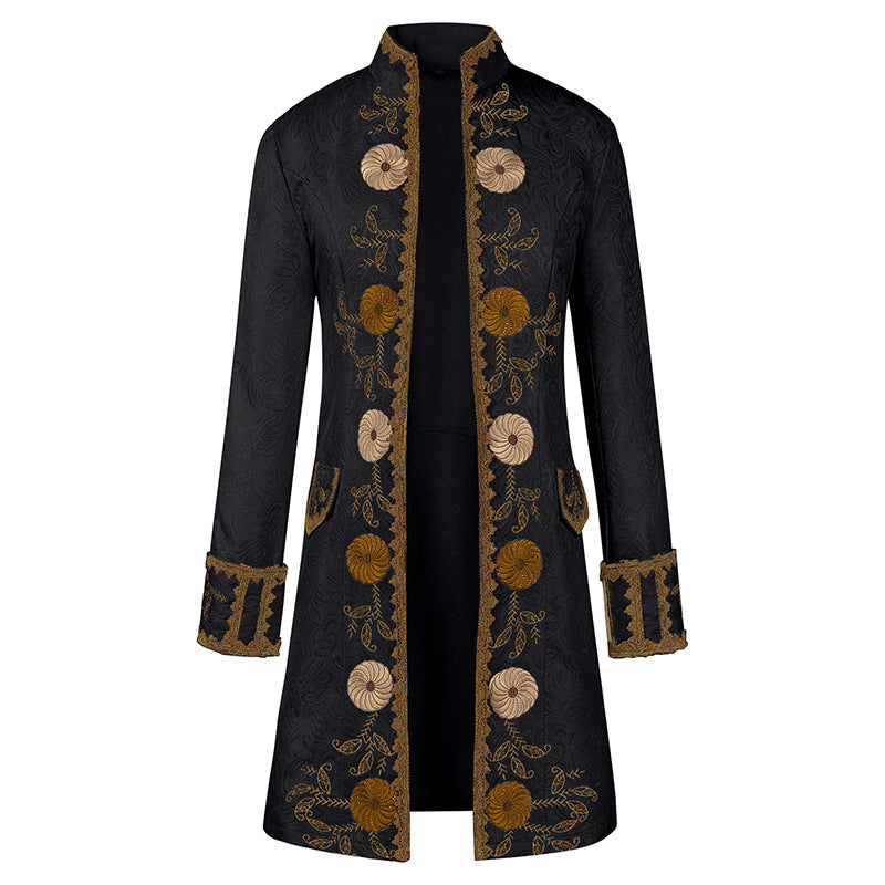 Channel timeless nobility with this luxury vintage jacquard coat. Crafted in a rich, textured brocade with a stand-up collar and clean lines, it delivers a refined medieval–Regency silhouette that suits Bridgerton, Victorian and steampunk-inspired looks.