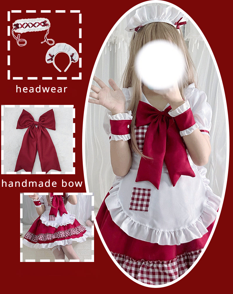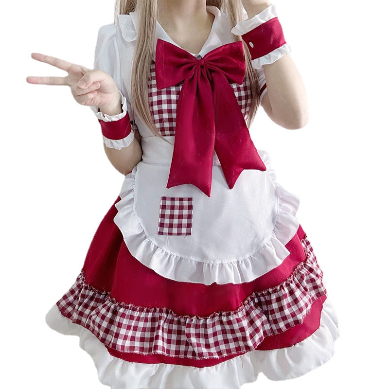 Maid Little Red Dress Costume - Lolita Style Xmas Gift for Girl Women
