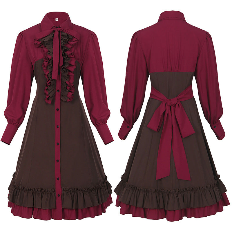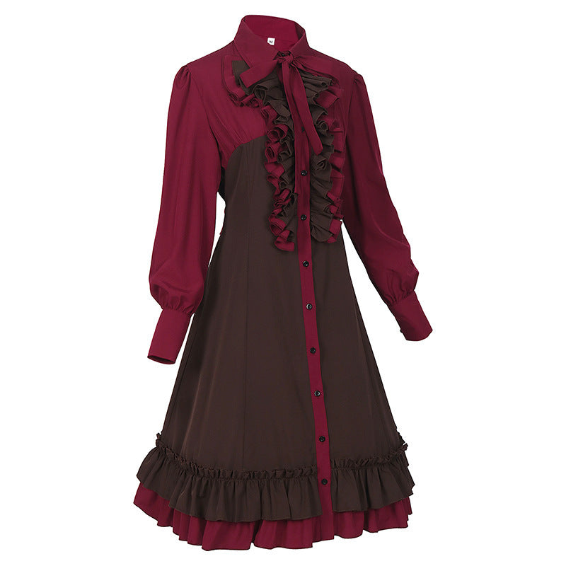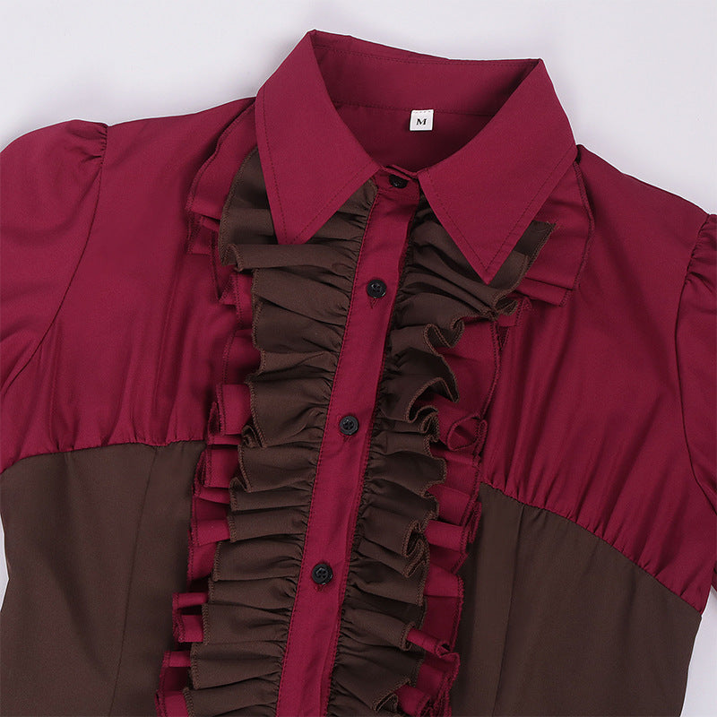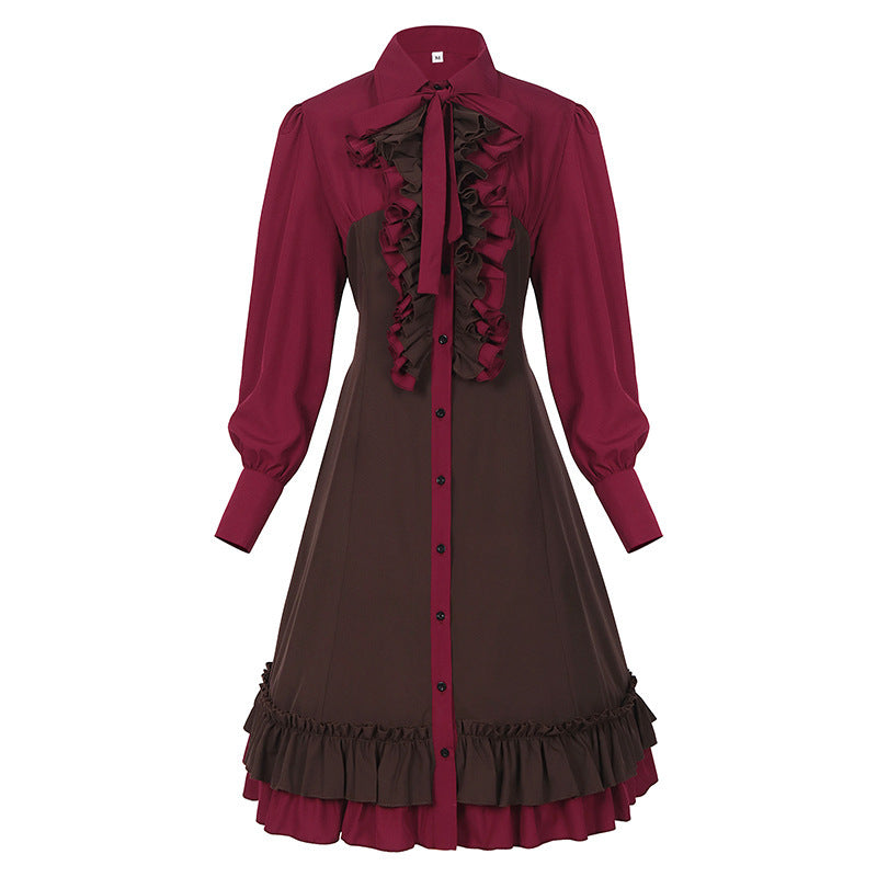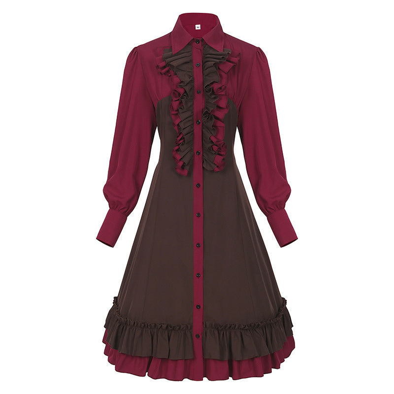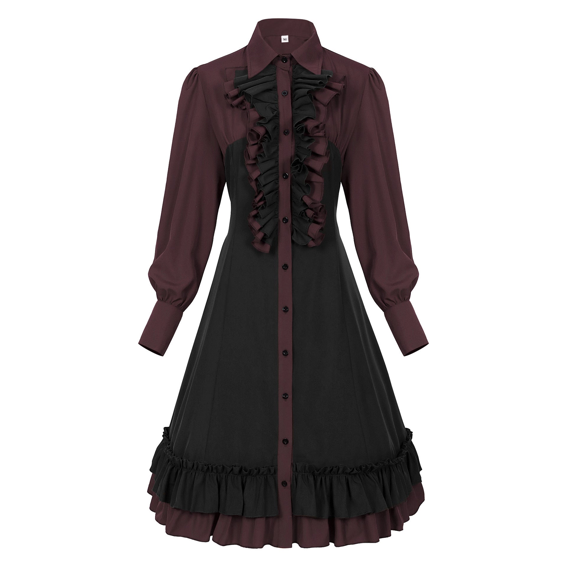 Medieval Court Dress Plus Size Shirt with Collar Ruffle Hem Vintage Skirt Shirt