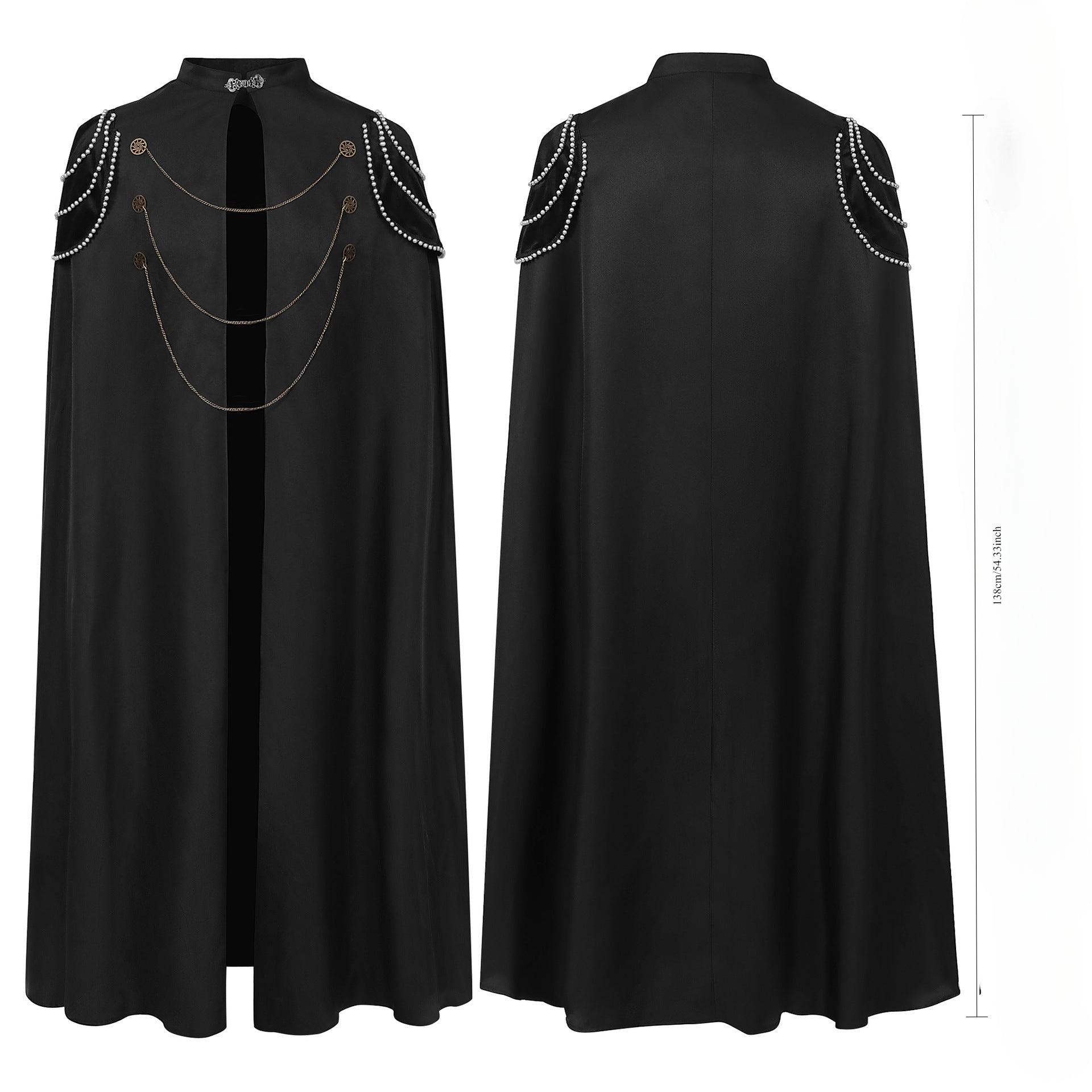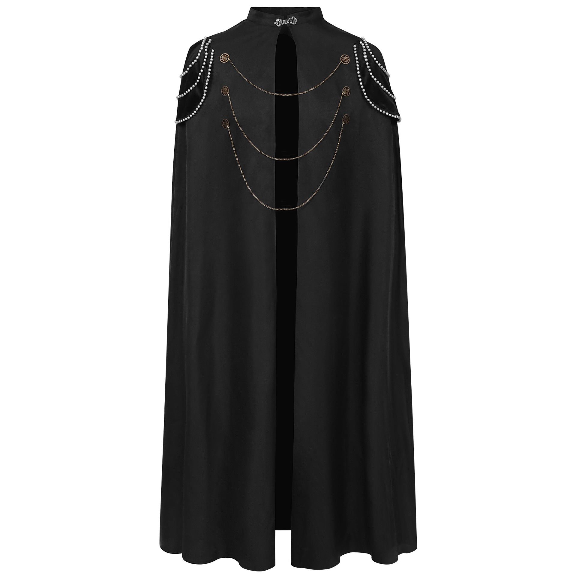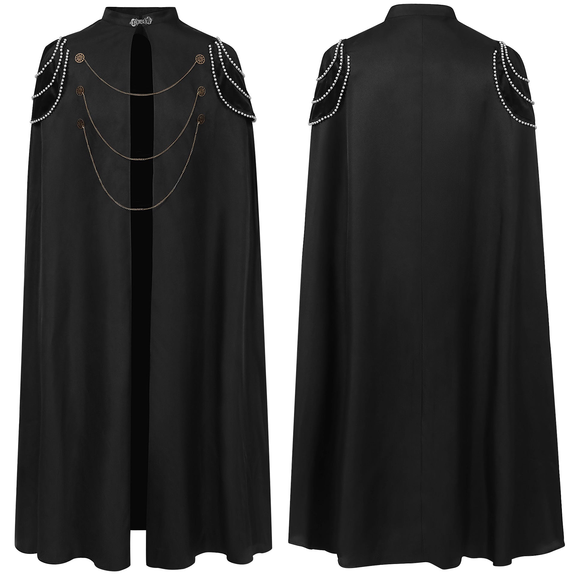 • Step into the grandeur of the past with our Medieval European Royal Cloak, featuring padded shoulders, vintage beaded details, gear chains, and a hood. Perfect for men and women, this cloak adds a regal touch to any performance or themed event. Order now and embrace the elegance of royal attire with this stunning hooded cape.