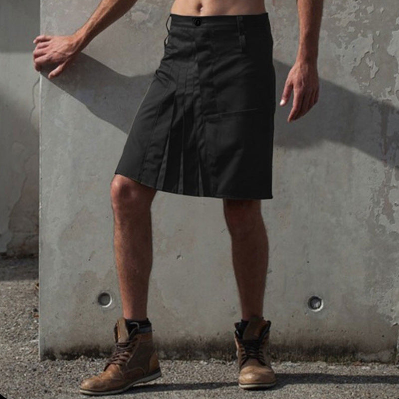 Medieval Men's Skirt Pleated Skirt, Casual Hip Skirt, Solid Color Samurai Skirt for Role-Playing