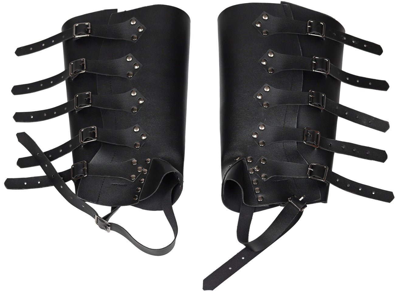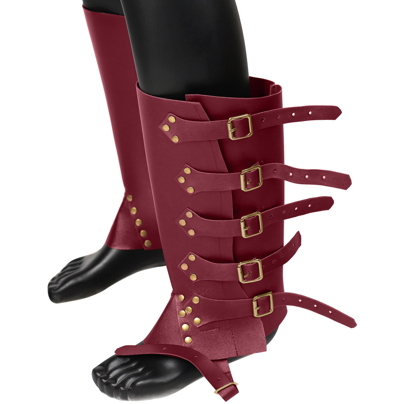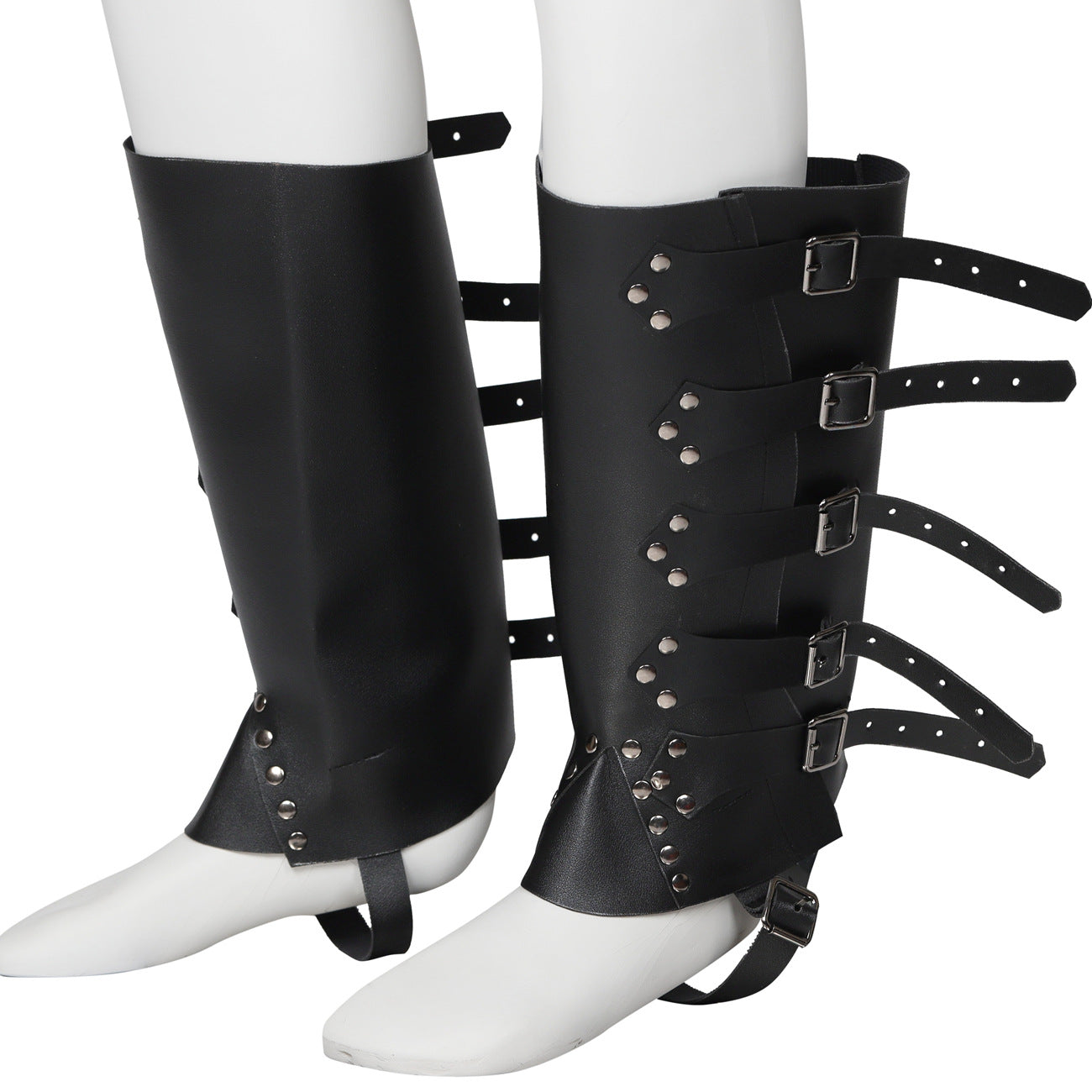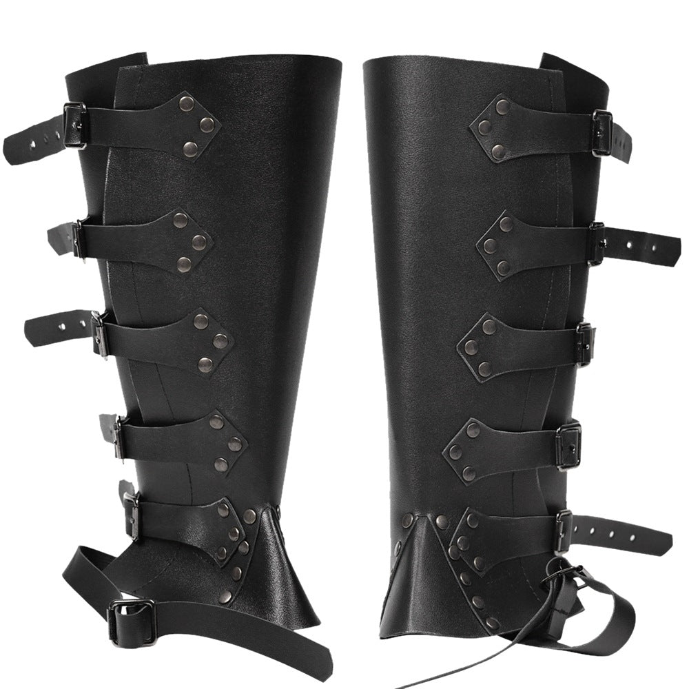 Medieval Renaissance Rider, PU, Leather Punk Shin Guards, Shoe Covers, Boots, Belt Buckle for Knights Crusader