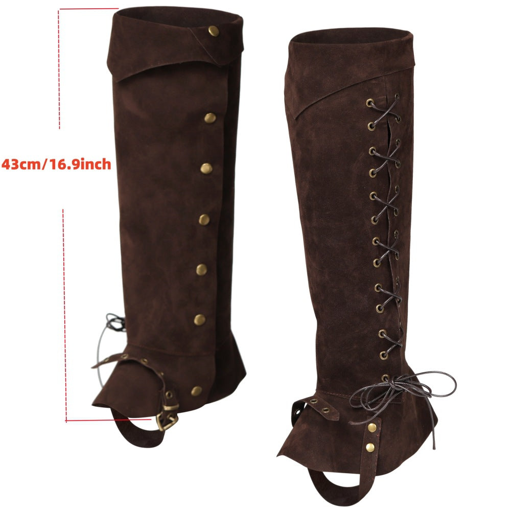 - Crafted from soft and durable suede, these boot covers are designed to give your footwear an authentic medieval look. Perfect for reenactments, costume parties, or Renaissance fairs, these shoe covers will complete your knight or crusader ensemble with style. Protect your shoes while adding a touch of historical charm with these must-have accessories. Transform your ordinary shoes into medieval footwear and immerse yourself in the spirit of the Middle Ages with our suede boot covers.