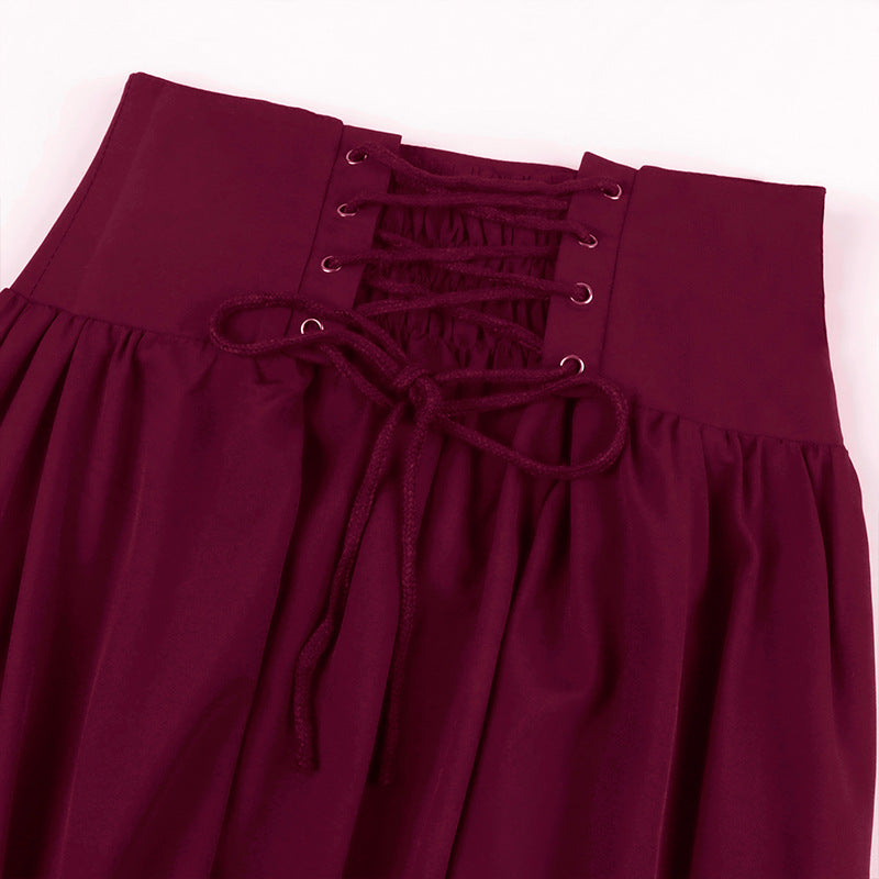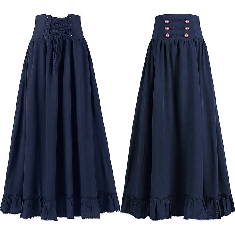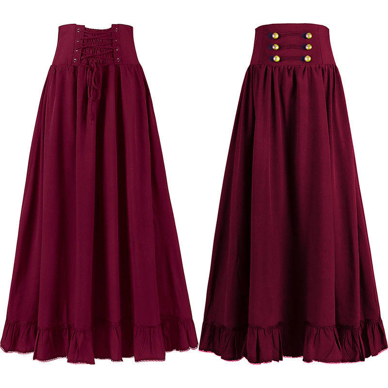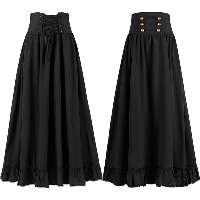 Medieval Vintage Gothic Belted Lace Waist A-line Skirt - Versatile Plus Size Lace Trim Skirt