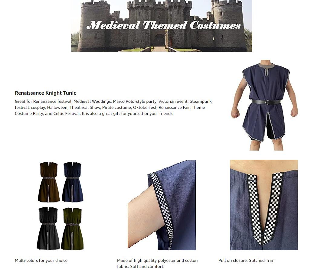 Men Medieval Renaissance Gothic Tunic Top Warrior Viking Shirt Halloween Costume