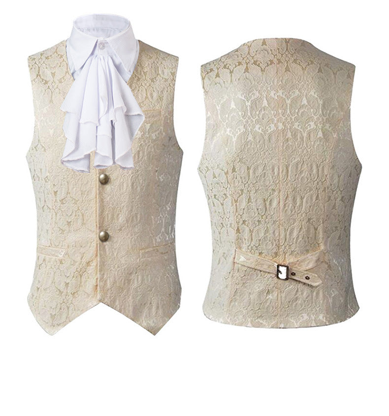 Men Retro Medieval Renaissance Vest with White faux Collar Waistcoat Gothic Steampunk Victorian Costume