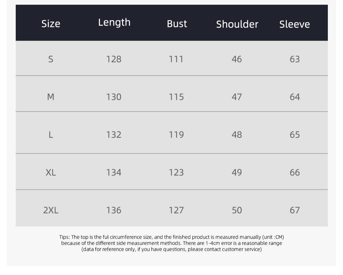 Manual measurement may vary by 1–3 cm (1 cm ≈ 0.39 in). Colors may appear slightly different due to lighting and monitor settings.