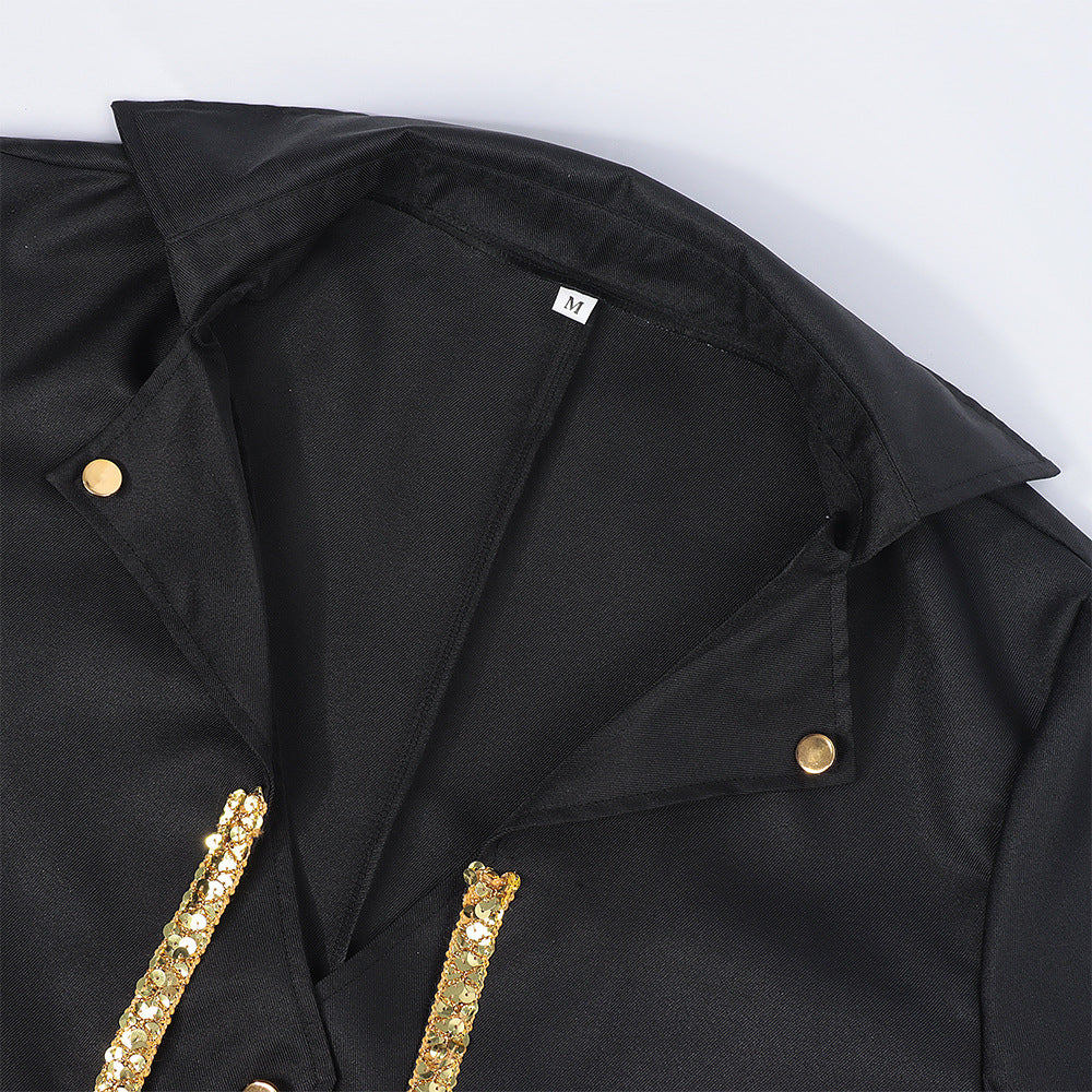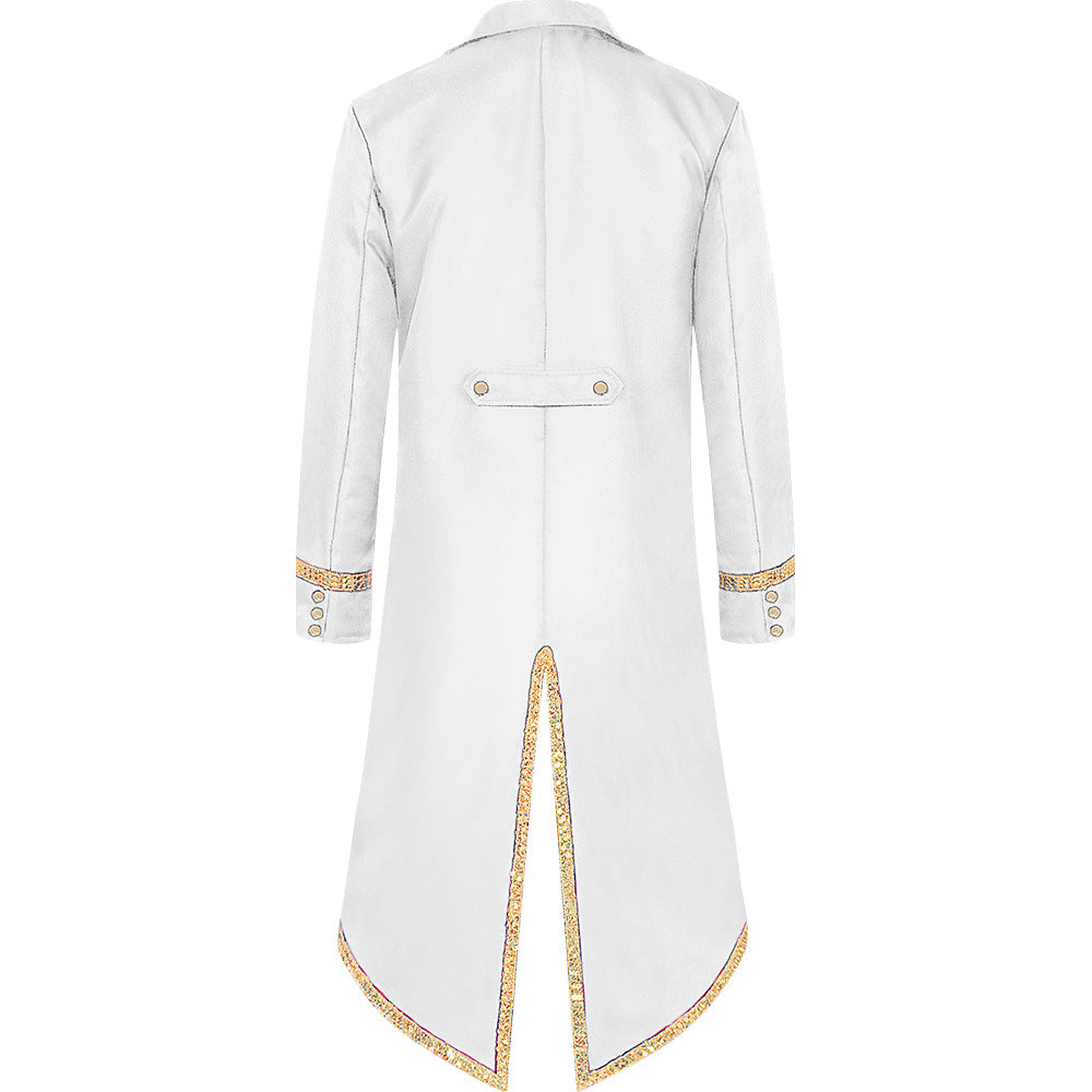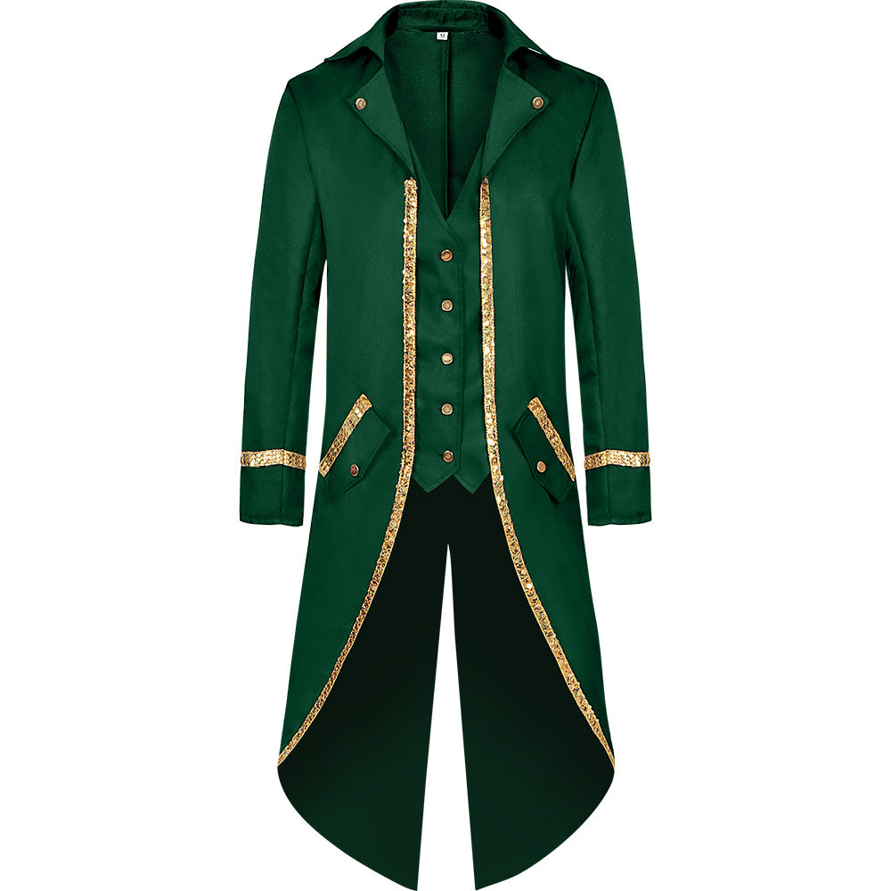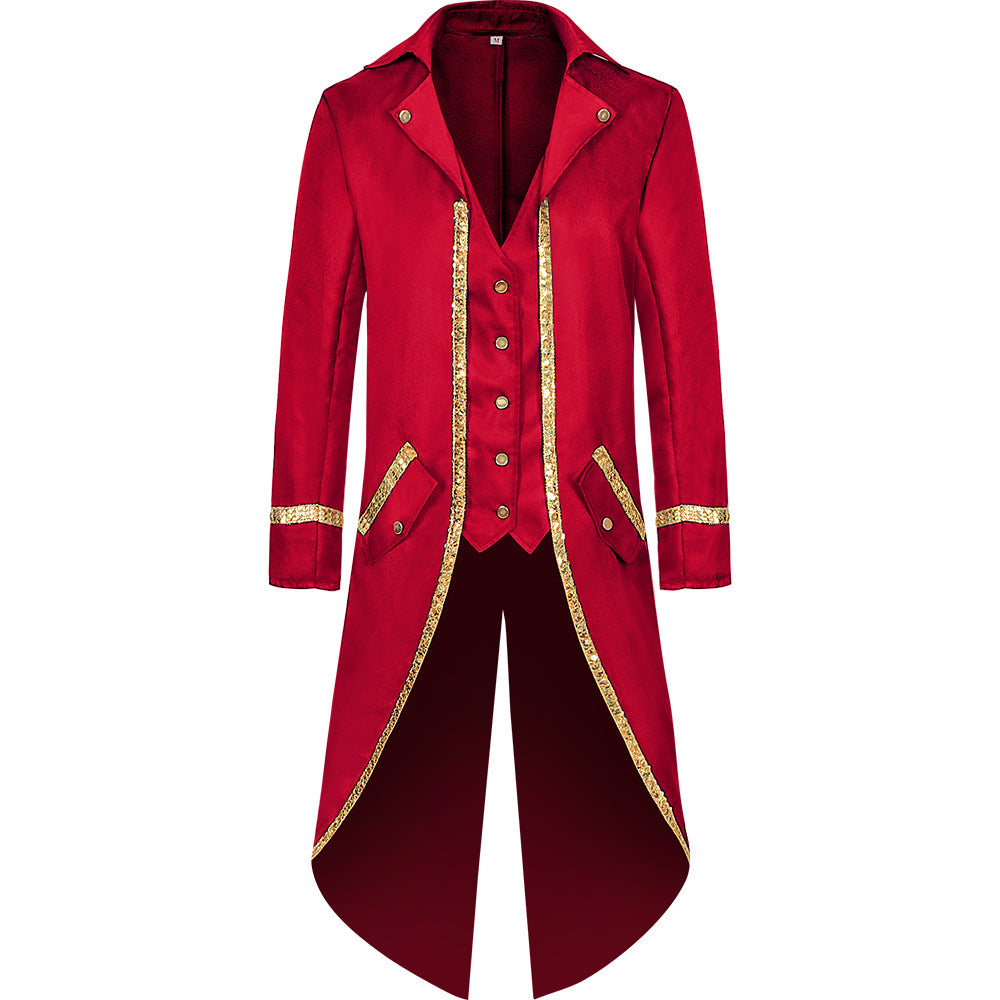Elevate your wardrobe with this men’s vintage steampunk tailcoat—a bold blend of Gothic elegance and Victorian flair. Designed with shiny gold-edge trim, the retro tuxedo silhouette is ready for cosplay, themed parties, stage performances, and formal steampunk events.