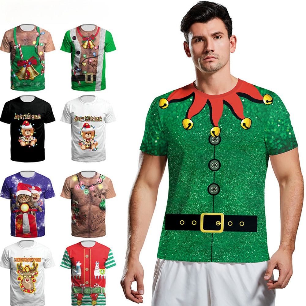 Men Women Santa Ugly Christmas T Shirt 3D Print Graphic Short Sleeve Xmas Tee
