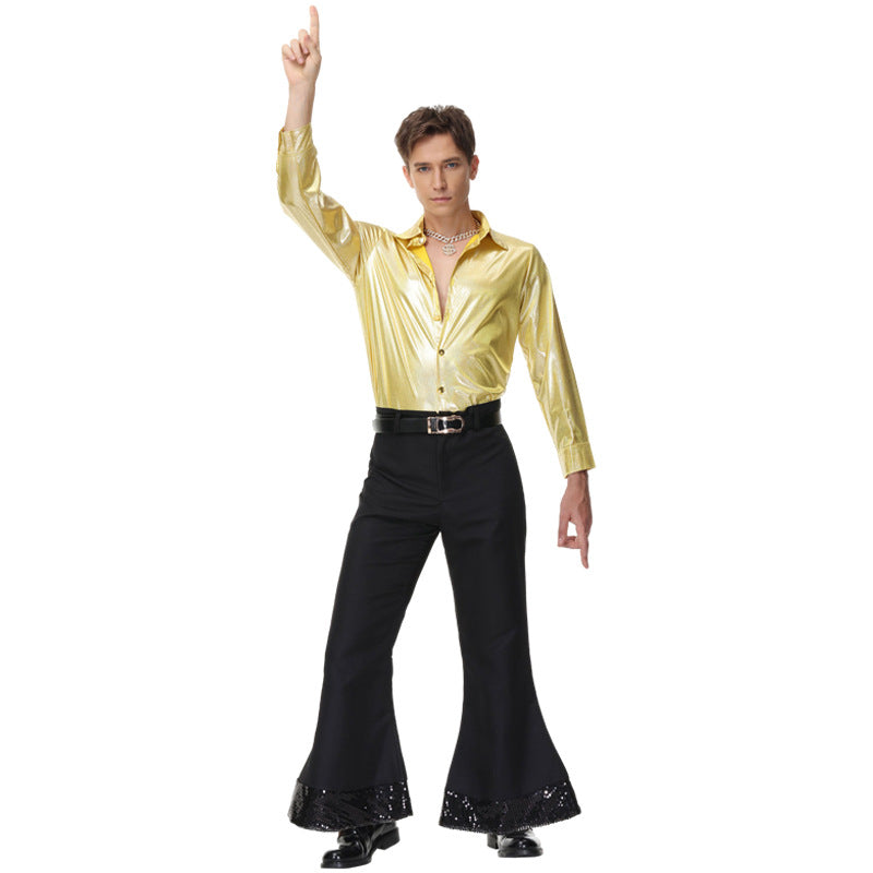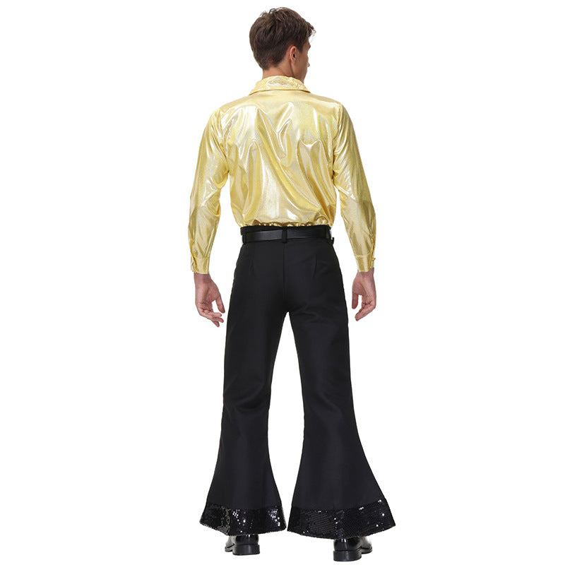 Mens Gold 60s 70s Disco Costume 1960s Fancy Dress Retro 1970s Hippie Outfit