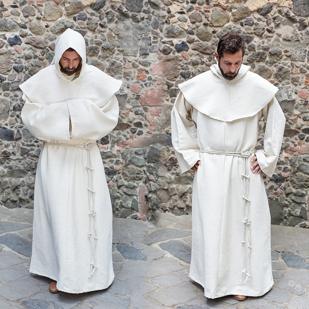 Mens Medieval Friar Hooded Robe Monk Renaissance Costume Halloween Cosplay S-4XL