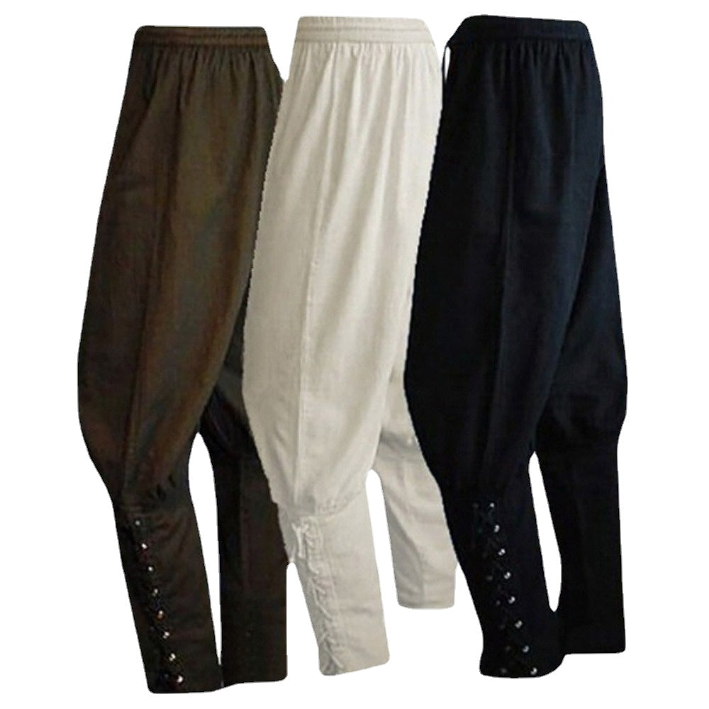 Men's Medieval Renaissance Pirate Viking Gothic Casual Pants Solid Color Loose Harlan Pants