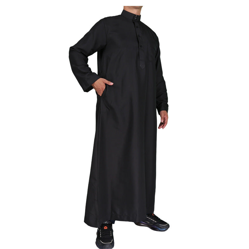 Mens Muslim Clothing Saudi Arab Long Sleeve Thobe Islamic Jubba Kaftan Long Robe Black Bisht
