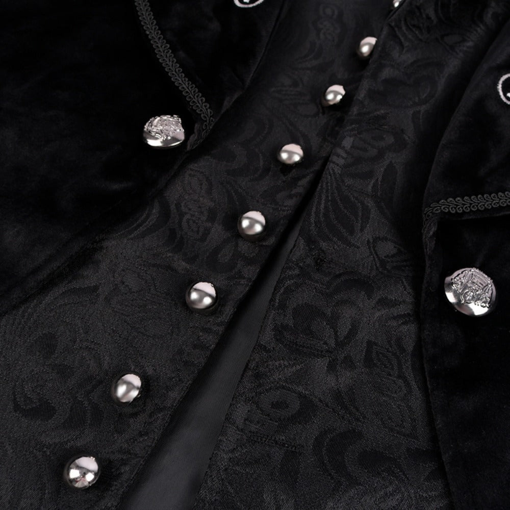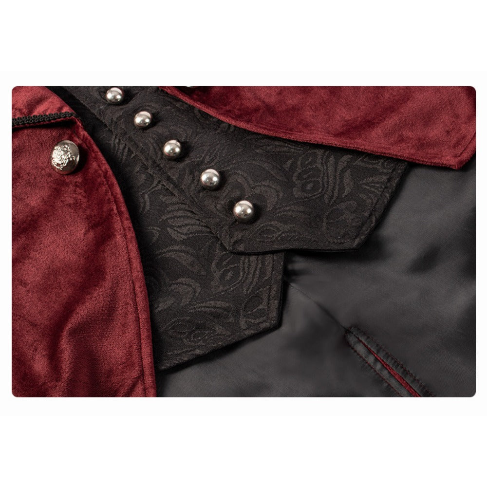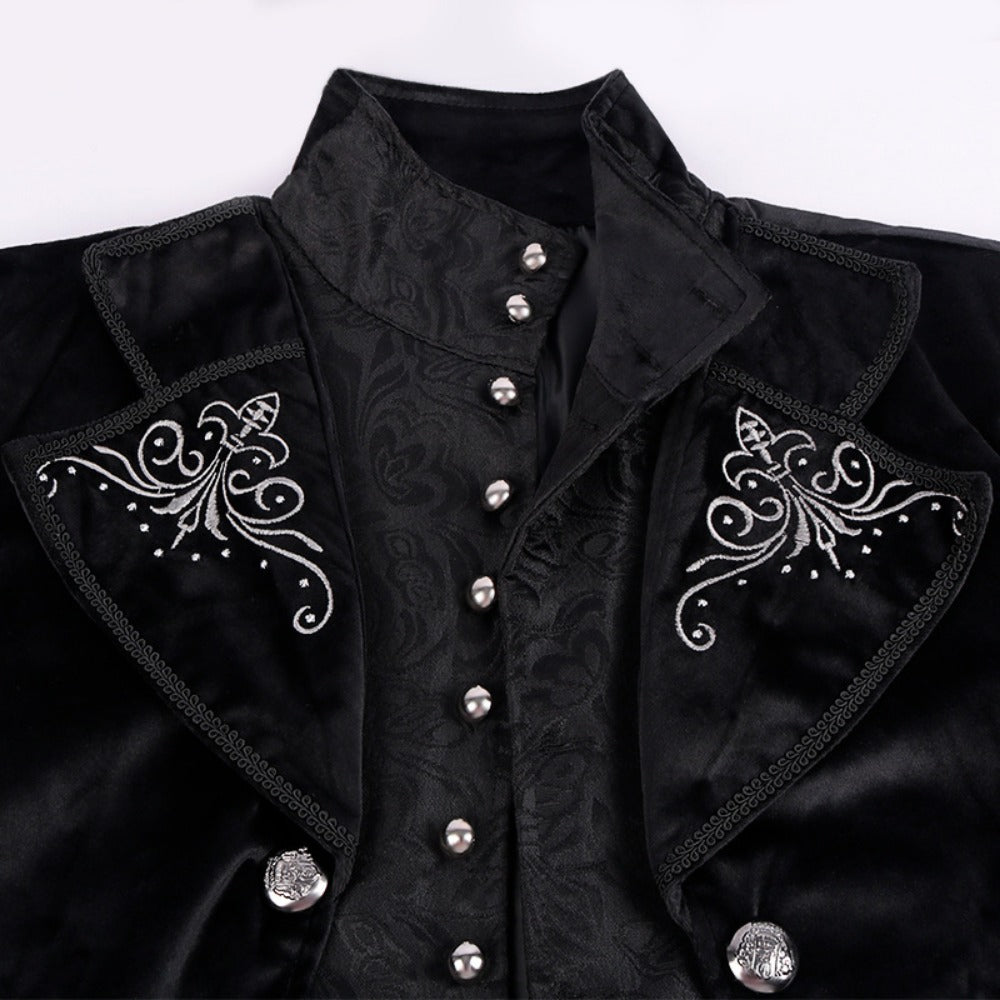 Elevate your look with this men’s high-collar, double-breasted velvet tailcoat. Inspired by vintage European and medieval nobility, it features plush velvet, subtle embroidery and a stage-ready silhouette—perfect for cosplay, weddings, parties and formal events.