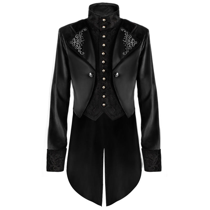 Men's Noble High Collar Double-Breasted Vintage European Medieval Tailcoat