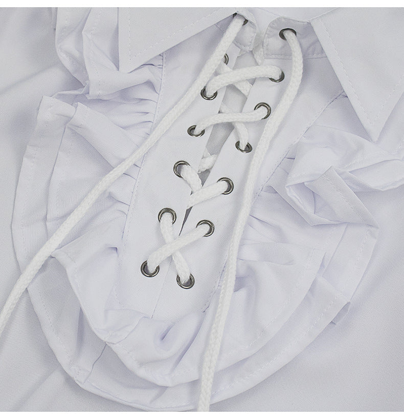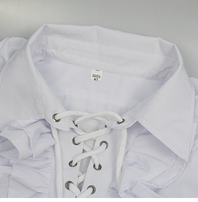 Elevate your wardrobe with a ruffle/pleated Renaissance dress shirt that blends medieval, Victorian and steampunk appeal. This versatile long-sleeve top adds historical flair for themed events or everyday styling.