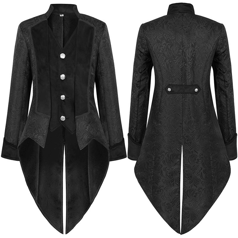 Elevate your look with this Gothic Victorian frock coat—perfect for steampunk styling and formal occasions alike. The longline silhouette and clean tailoring add instant retro elegance for cosplay, parties, and stage wear.