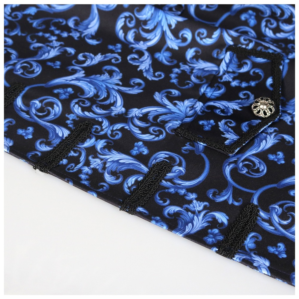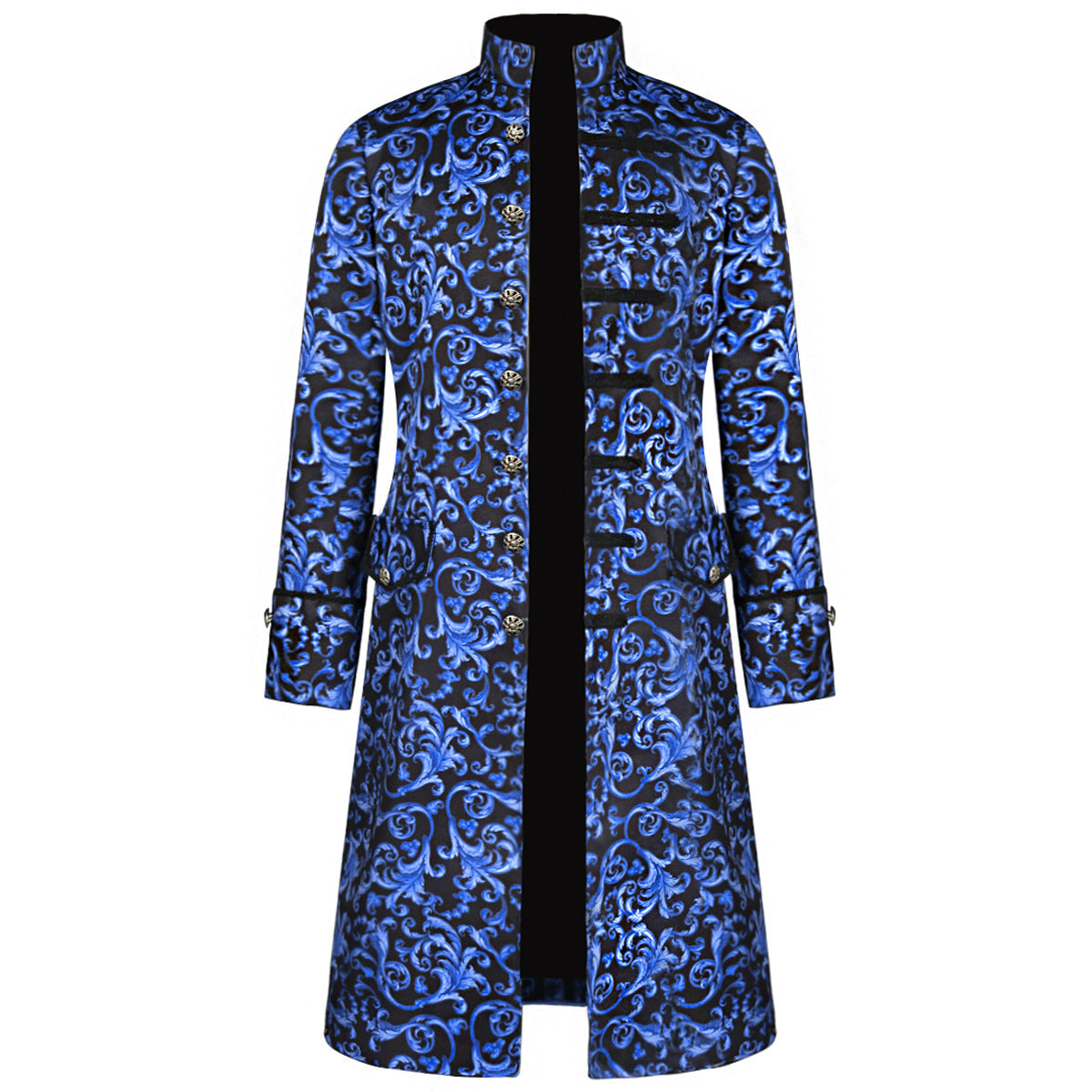 - Stand collar, two flat decorative pockets, slim fit, gothic steampunk victorian medieval style. Knee length frock coat, open front with decorative buttons with exquisite braiding design. The button is decorative, it can not button up.