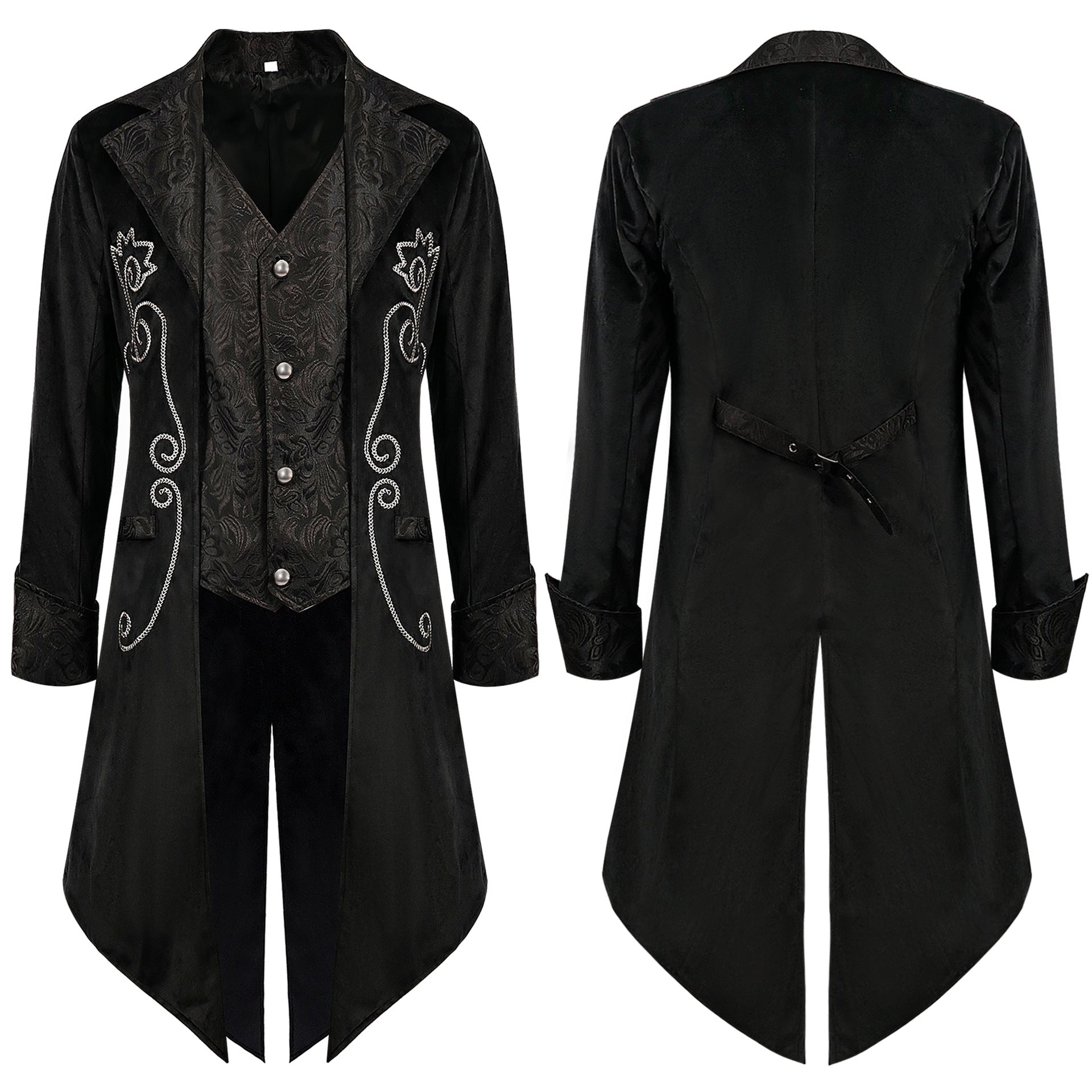 Elevate your look with this Gothic Victorian frock coat—perfect for steampunk styling and formal occasions alike. The longline silhouette and clean tailoring add instant retro elegance for cosplay, parties, and stage wear.