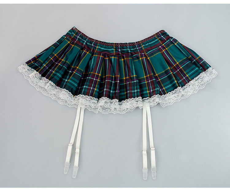Adult uniform-inspired plaid lingerie set crafted from soft, stretchy fabric. The fitted top pairs with a chic plaid midi skirt for a playful, confident look—great for parties, clubwear, role play, or intimate moments.