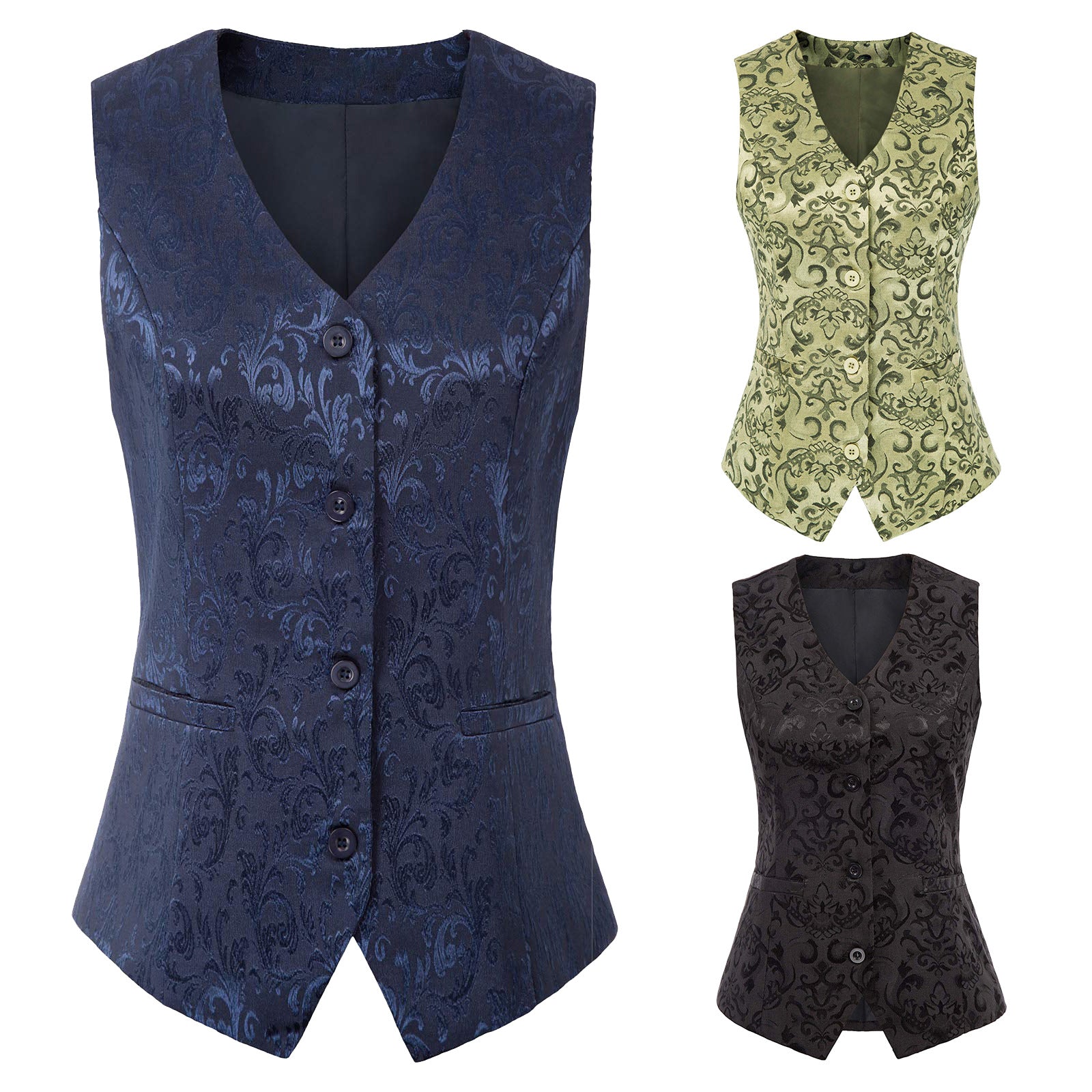Plus Size Women Retro Jacquard Vest Steampunk Jacquard Vest Multi Color Party Costume Waistcoat