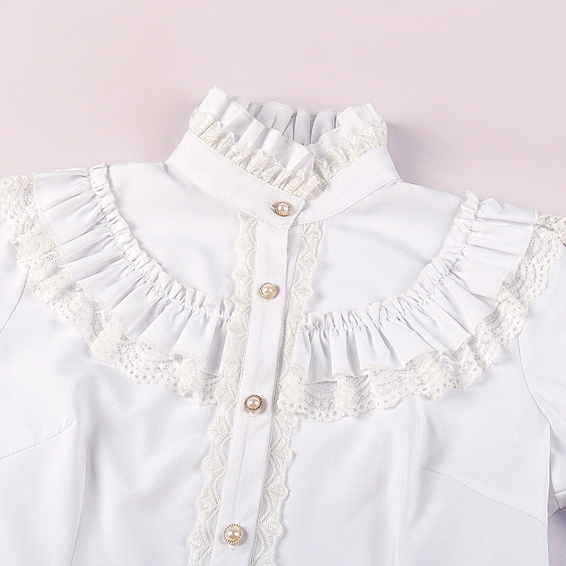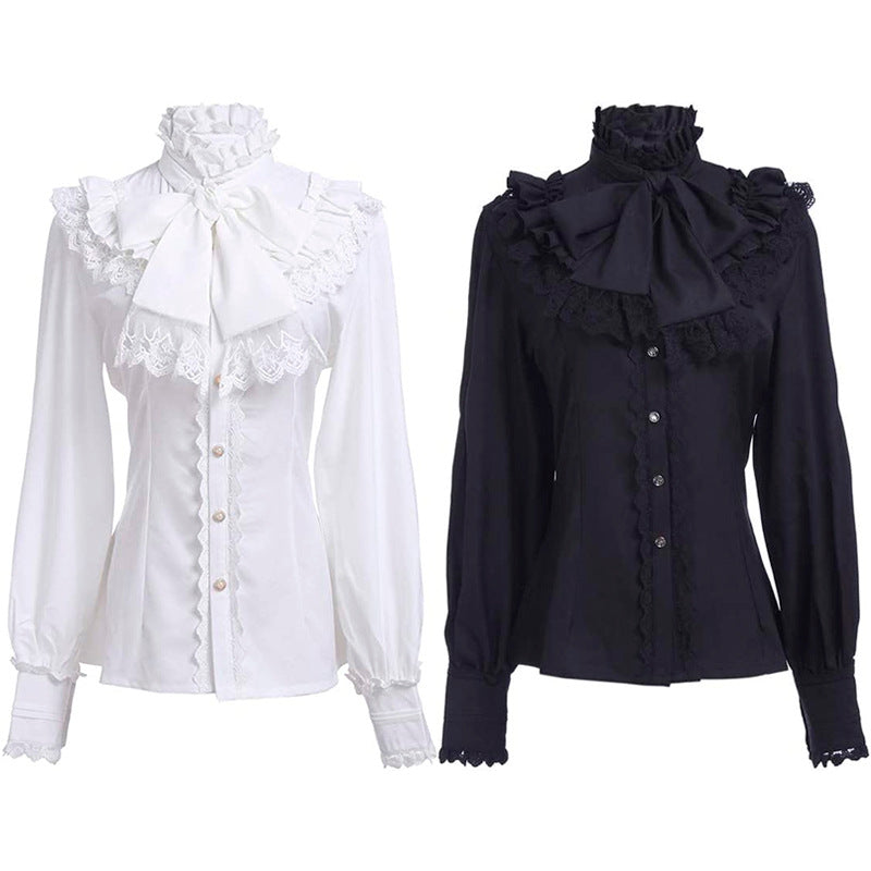 Victorian Era Shirt Women's Gothic Shirt Vintage Long Sleeve Lotus Pleated Top