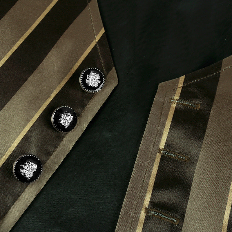 Vintage Men Medieval Costume Retro Gothic Striped Vest Waistcoat