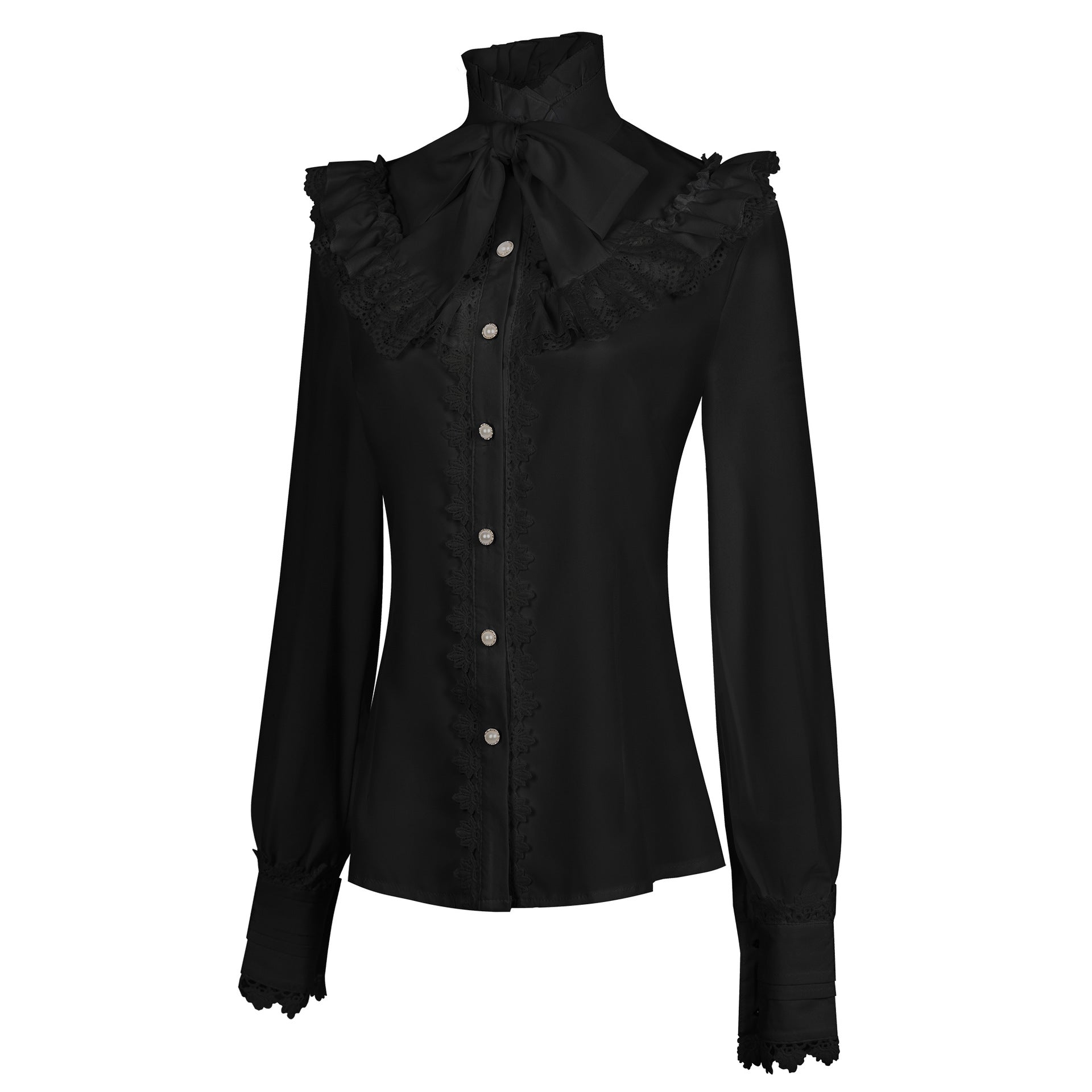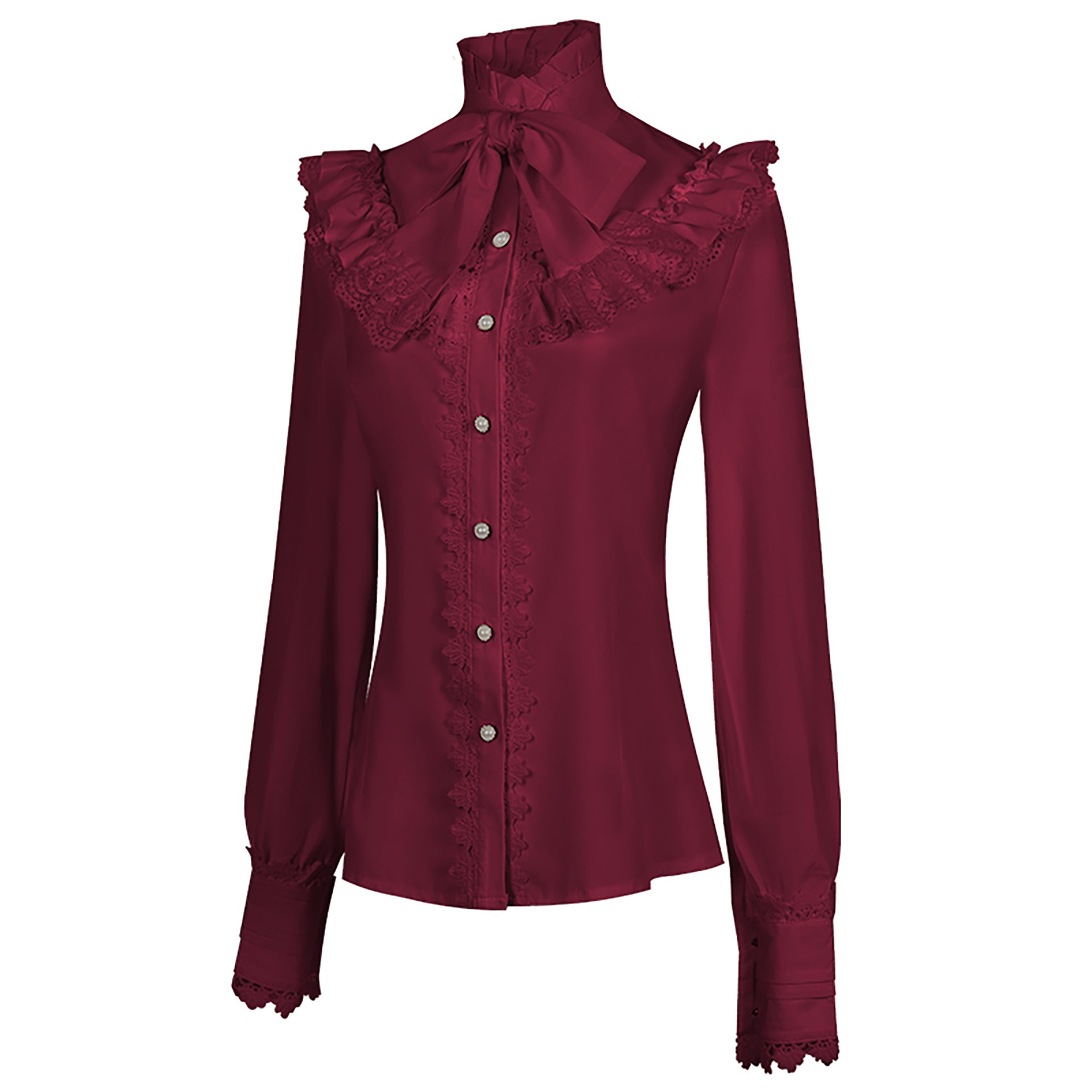 Victorian Shirt Women's Gothic Shirt Vintage Long Sleeve Lotus Pleated Top